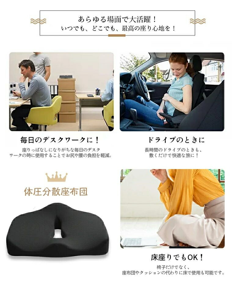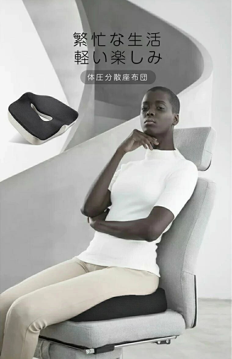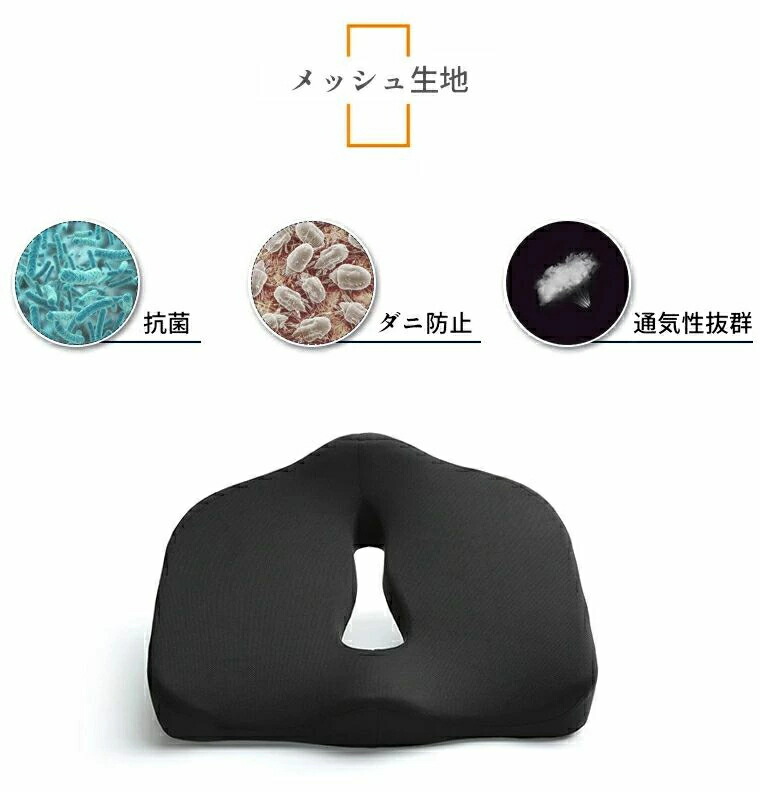 座布団 クッション中空型 腰痛改善 骨 ブラック+グレー ブラック