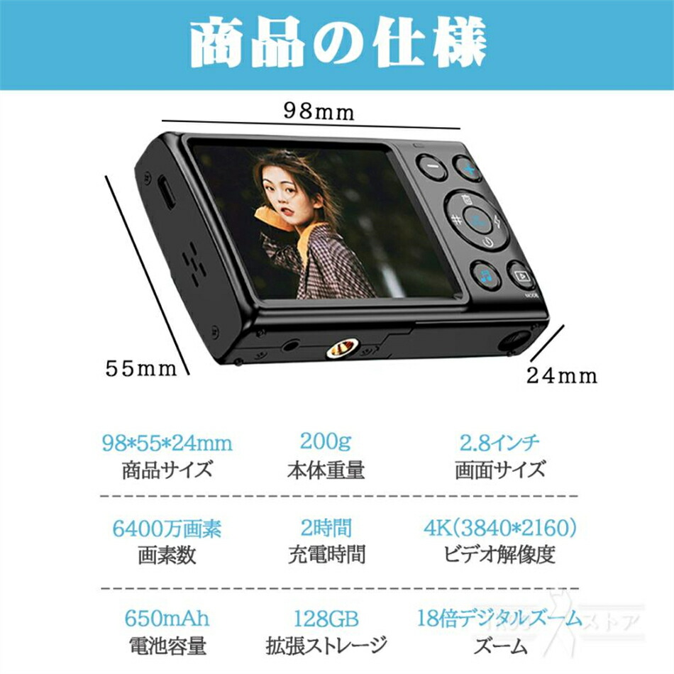 デジカメ デジタルカメラ 4K 480 ブラック ホワイト ピンク 必要ありません SDカード32G SDカード64G SDカード128G