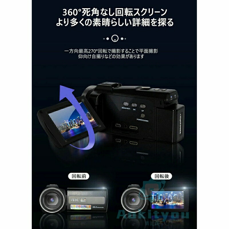 ビデオカメラ 4K 4800万画素 W