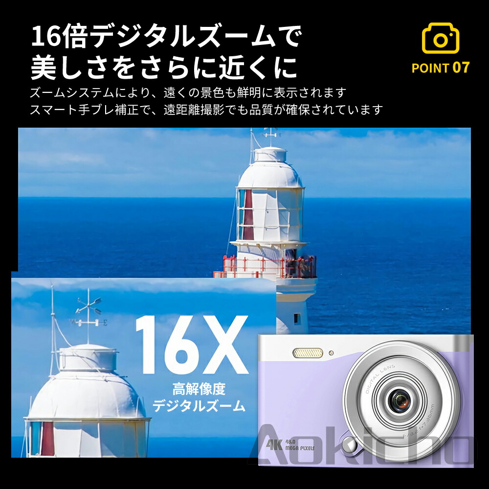 デジタルカメラ 4K 5000万画素 ブラック ホワイト ピンク パープル 必要ありません SDカード16GB+カードリーダ*1 SDカード32GB+カードリーダ*1 SDカード64GB+カードリーダ*1 SDカード128GB+カードリーダ*1