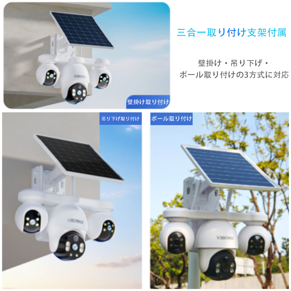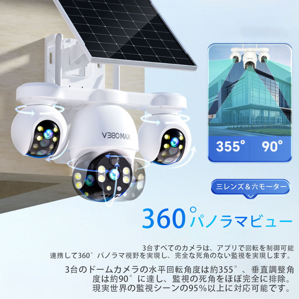 防犯カメラ 屋外 太陽光発電 360° 不要 32GB TFカード 64GB TFカード 128GB TFカード