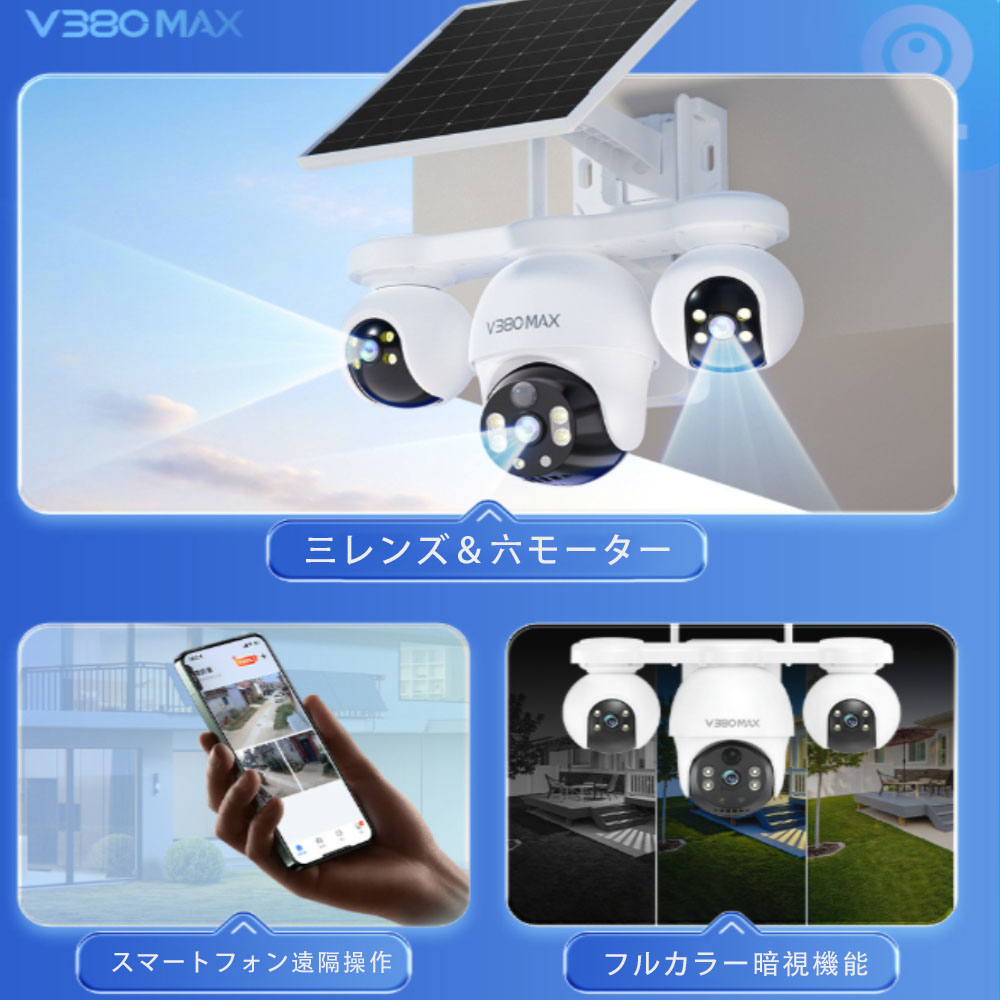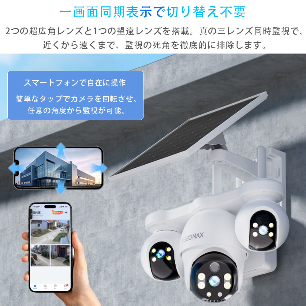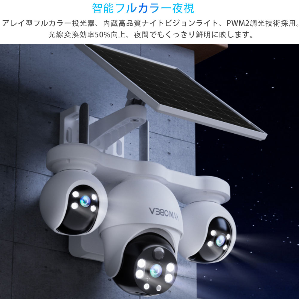 防犯カメラ 屋外 太陽光発電 360° 不要 32GB TFカード 64GB TFカード 128GB TFカード