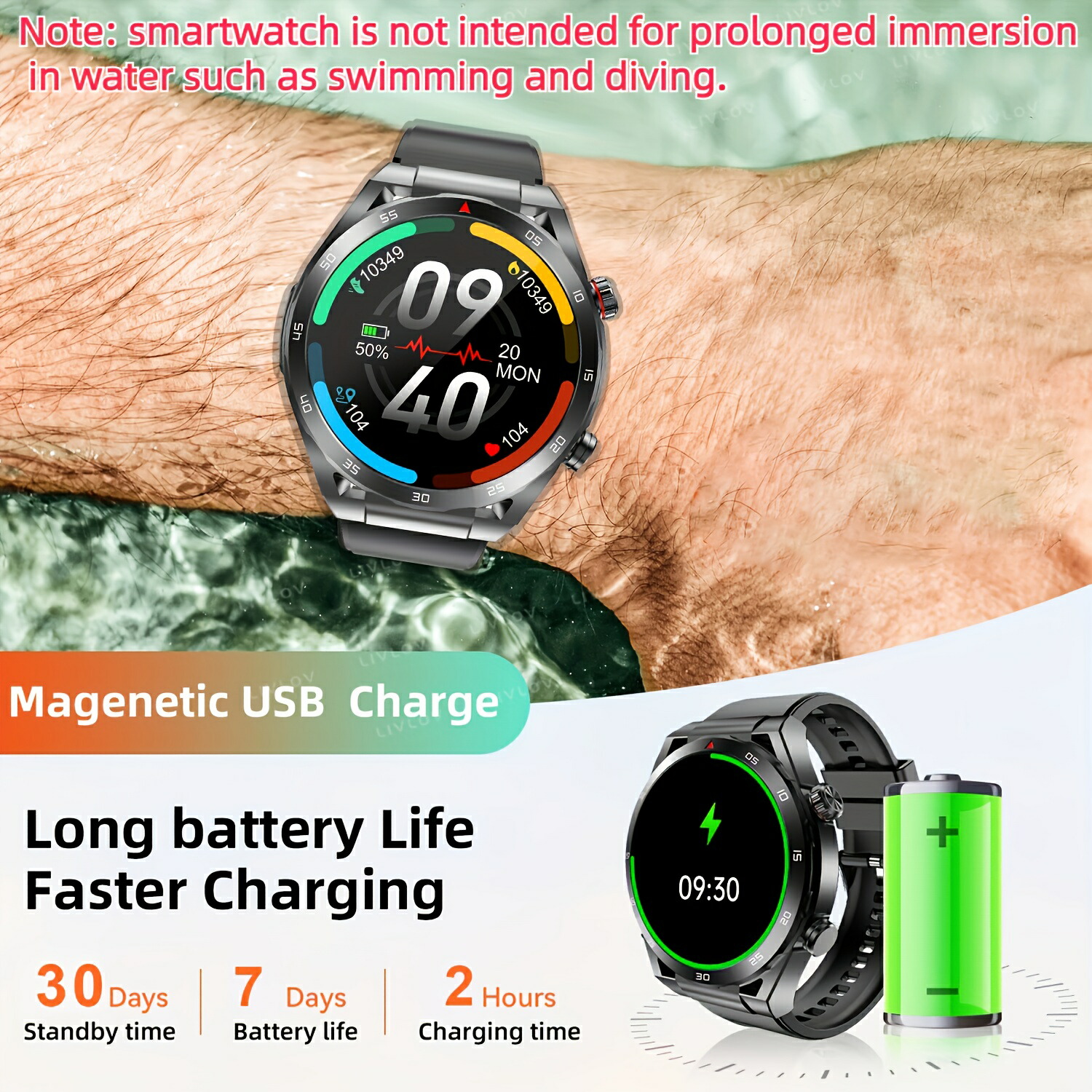 スマートウォッチ 腕時計 運動モード ブラック 赤 オレンジ