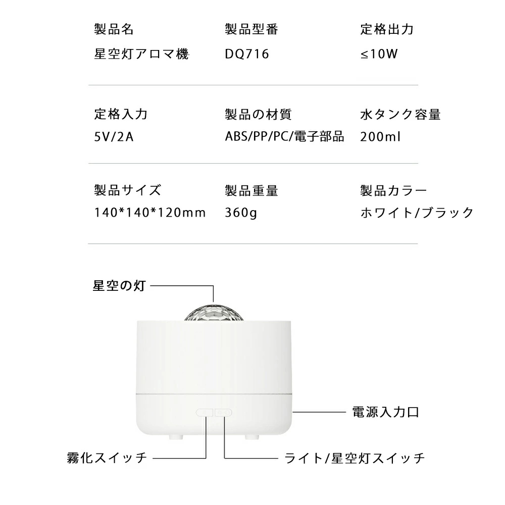 加湿器 卓上加湿器 アロマオイル アロ ホワイト ブラック 加えません アロマオイル1本付き アロマオイル3本セット