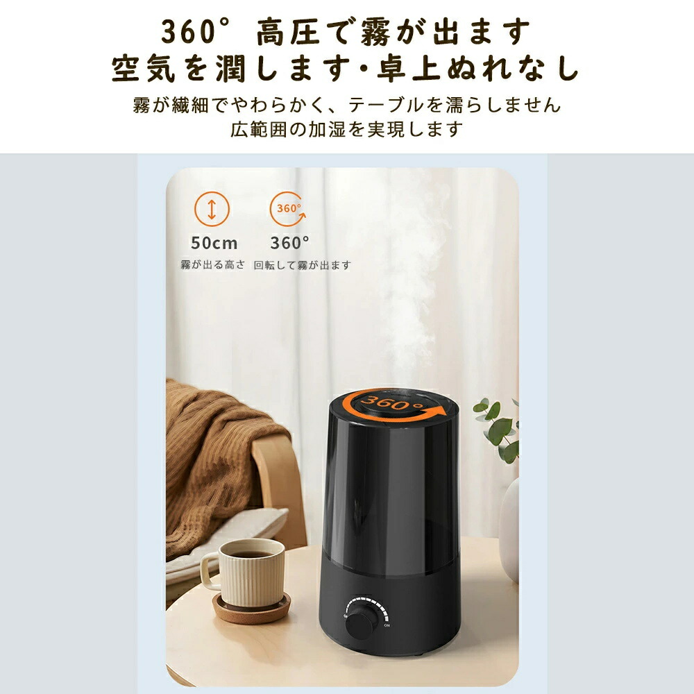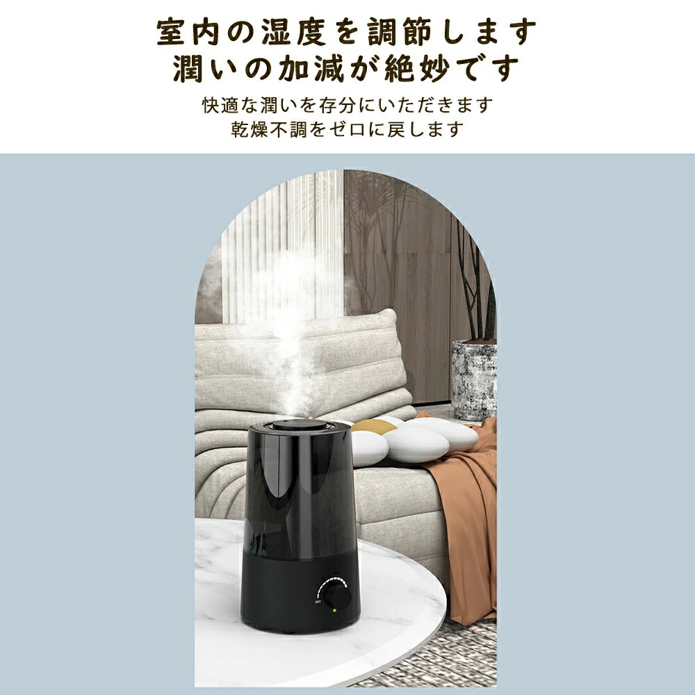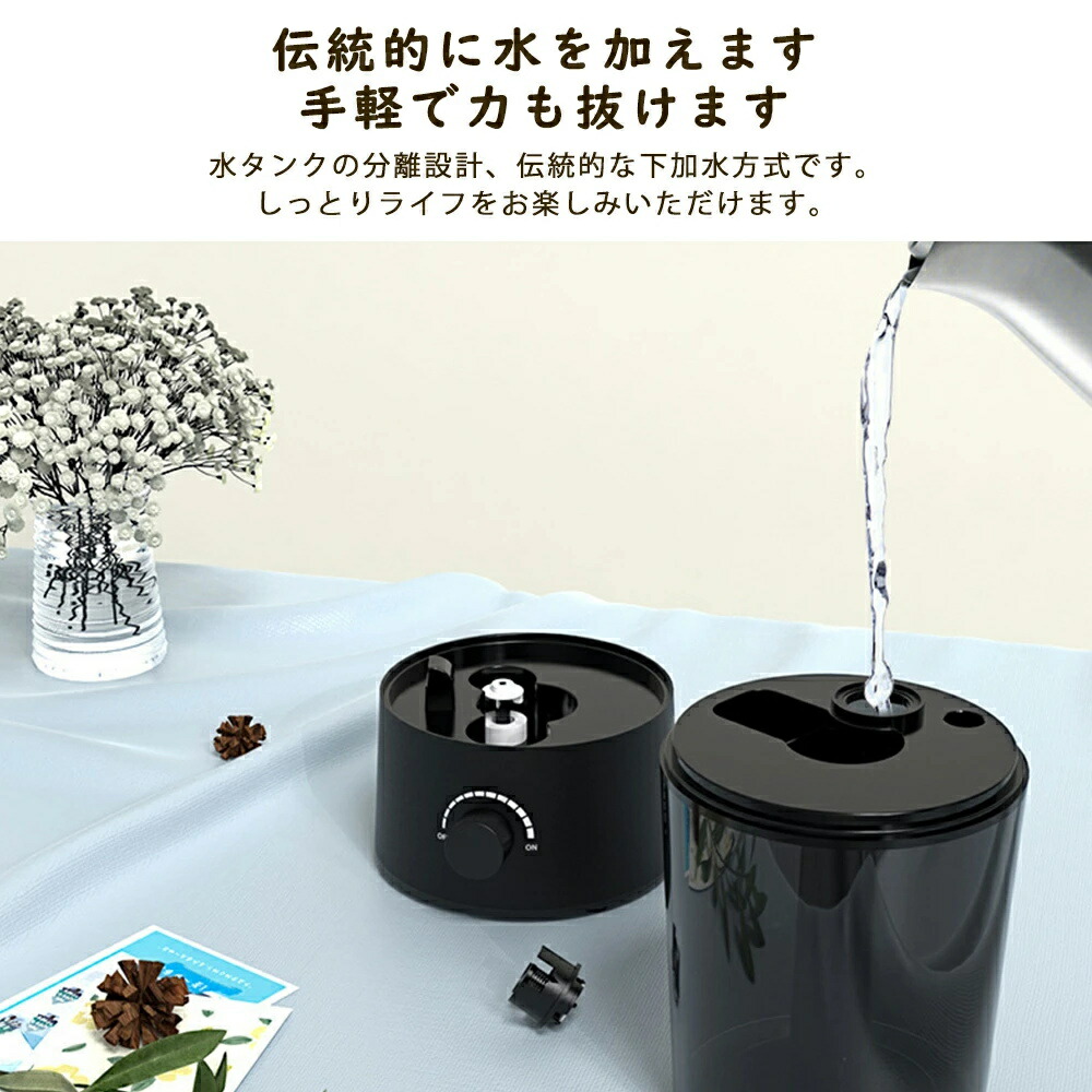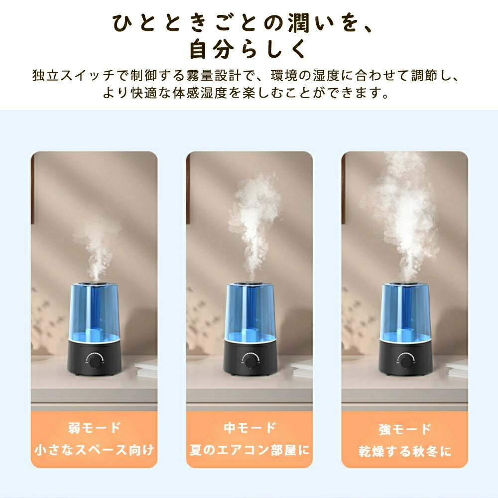 加湿器 超音波加湿器 小型 静音 卓上加湿器 お手入れ簡単 卓上 おしゃれ オフィス 大容量 超音波式 上部給水 上から給水 節電 強力加湿 保湿 乾燥 寝室 省エネ 軽量 空焚き 子供部屋