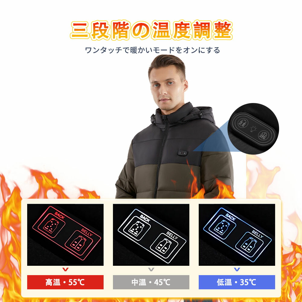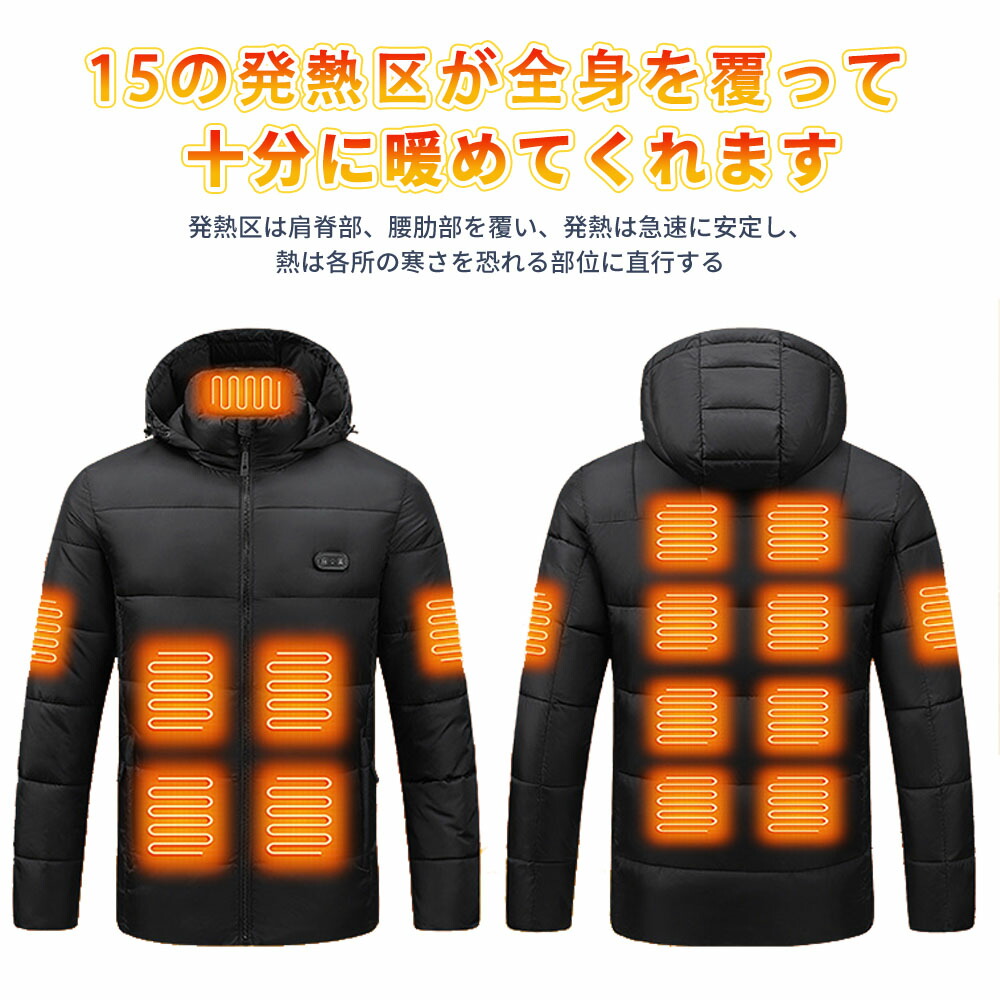 電熱ジャケット 発熱ジャケット 15エリア発熱 電気ジャケット 電熱ウェア アウター 長袖 前後3段温度調整 中綿コート 発熱コート バイクウェア インナー 水洗い 速暖 超軽量 釣り スキー 極暖
