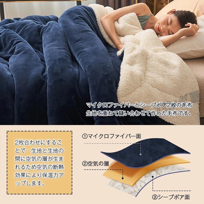 毛布 2枚合わせ もうふ ブランケット オレンジ 水色 あずき色 グレー ブルー キャメル ダークグレー ネービー グリーン