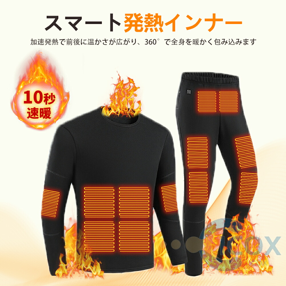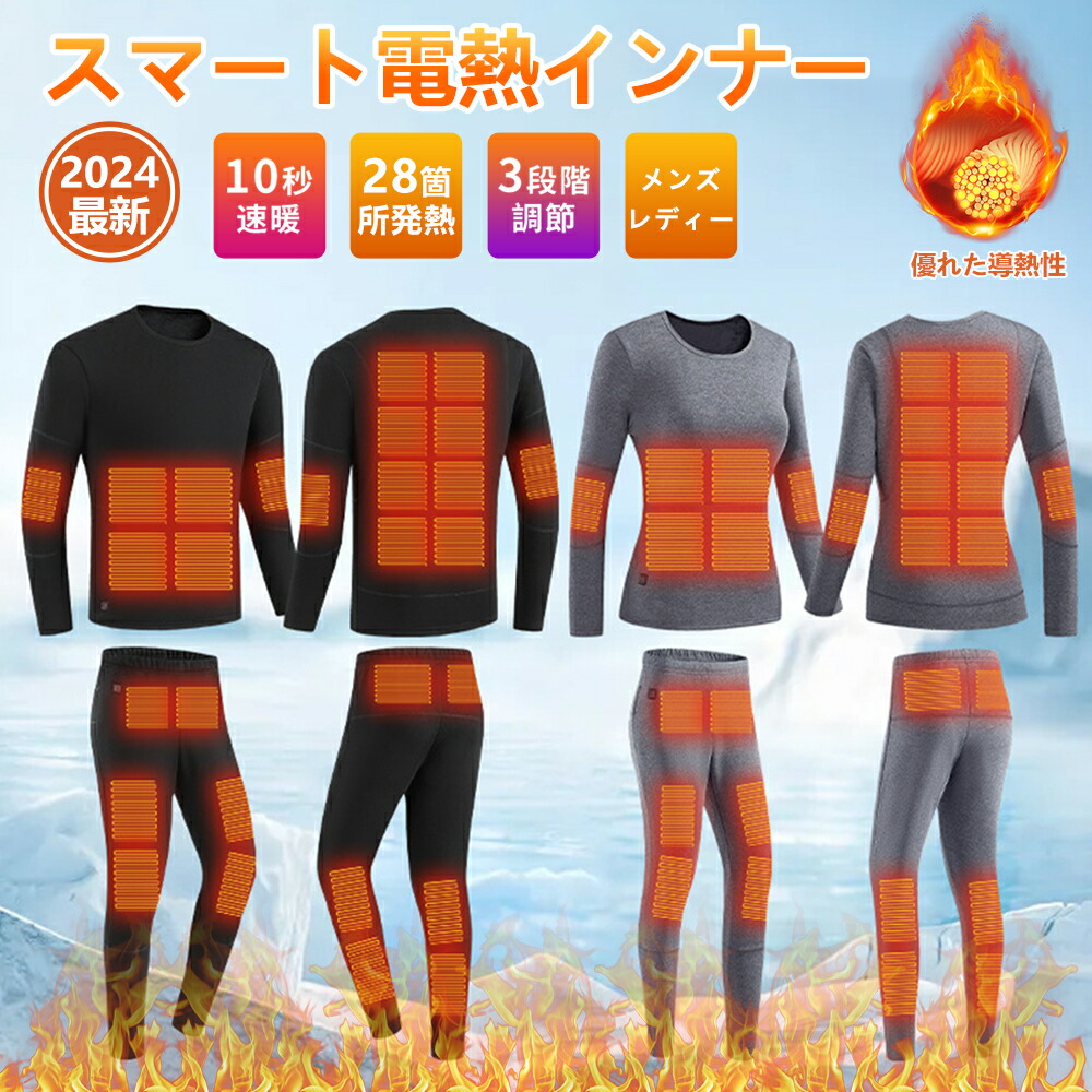 電熱インナー 電熱パンツ 電熱インナー スポーツ アウトドア 豊富 S M L XL 2XL 3XL 4XL 5XL ブラック-トップス グレー-トップス ブラック-パンツ グレー-パンツ ブラック-上下セット グレー-上下セット