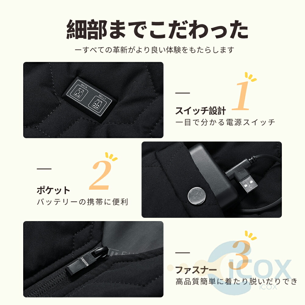 強力に揉まないで下さい。ベストはUSBケーブルが付属しており、市販のUSB 2A・5V以上の出力モバ