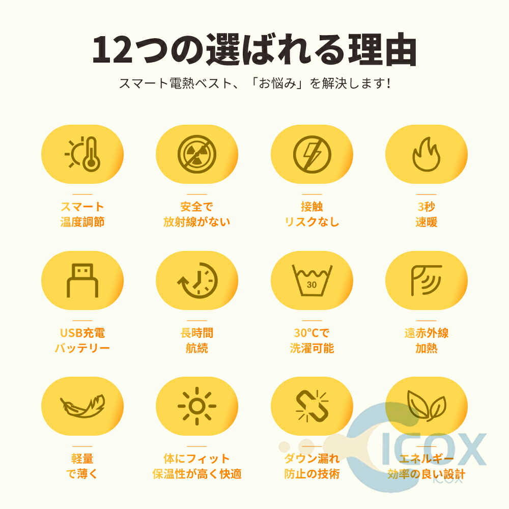 肩にさらに2つの発熱シートが追加され、肩をよりよくケアできます。 腹部をよりよくケアするために、さらに2つの加熱パッドが腹部に追加されます。 背中にさらに2枚の発熱シートが追加され、背中をよりよくケアできます。 20枚の発熱シートを使用しているので、着るだけで全身ポカポカになります。