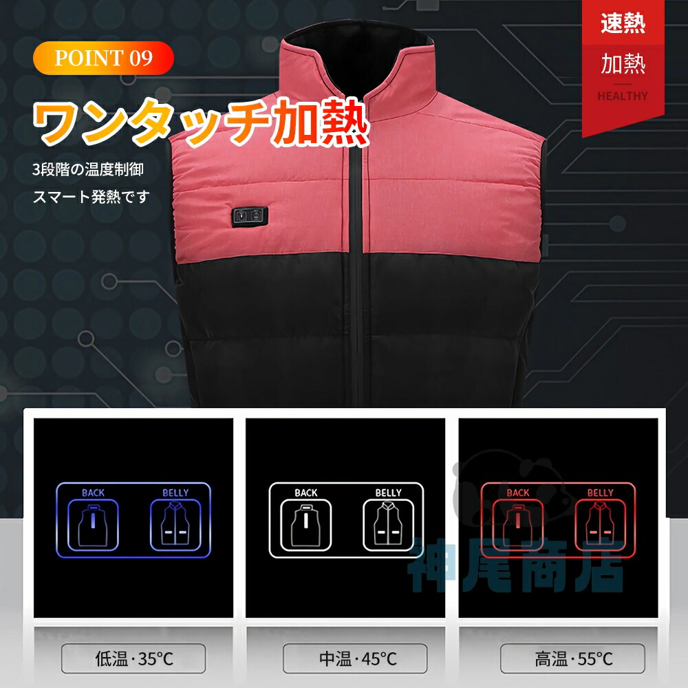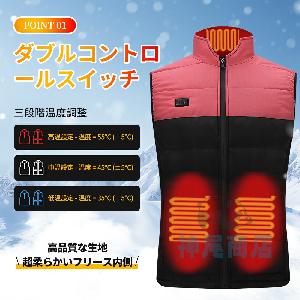 電熱ベスト 電熱ウェア 3段階調温 2 トップス ベスト ジレ 豊富な品揃え S M L XL 2XL 3XL 4XL 5XL ブラックピンク ダークグレー