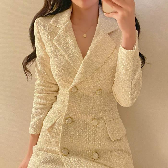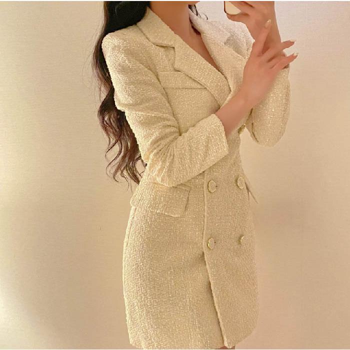 ワンピース レディース ツイード 春 レディースファッション 新登場! 黒 白 S M