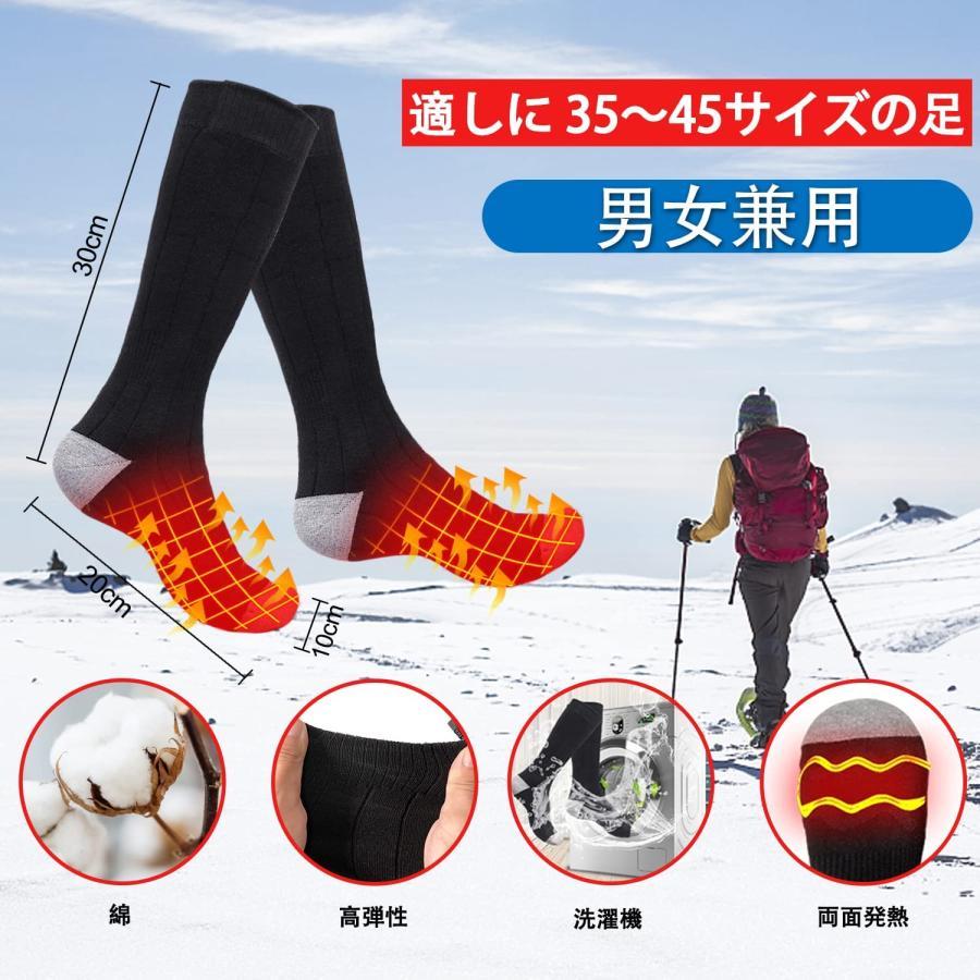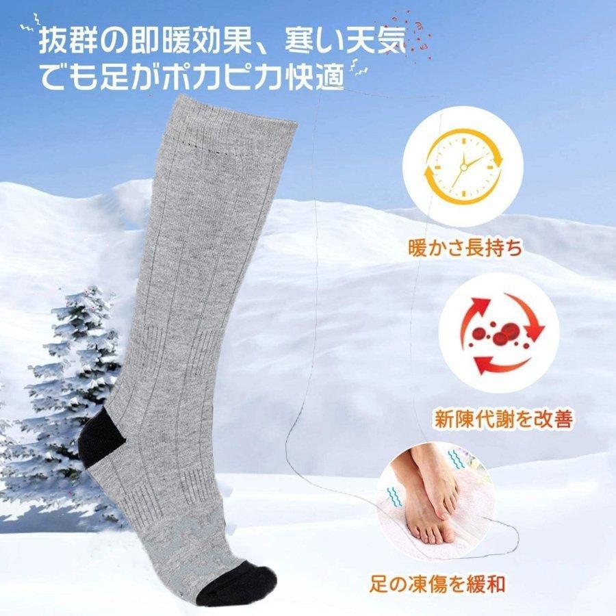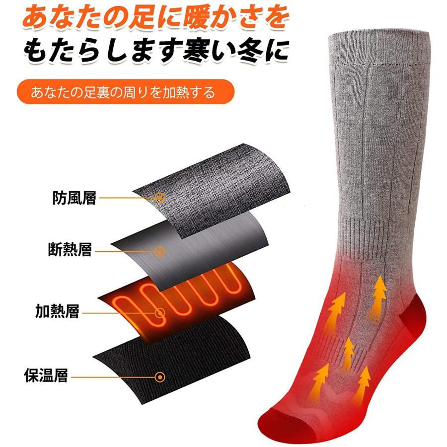 電熱ソックス 電気靴下 ヒーターソック ユニセックス 靴下 レッグウェア 人気 グレー ブラック 必要ありません 4000mAh