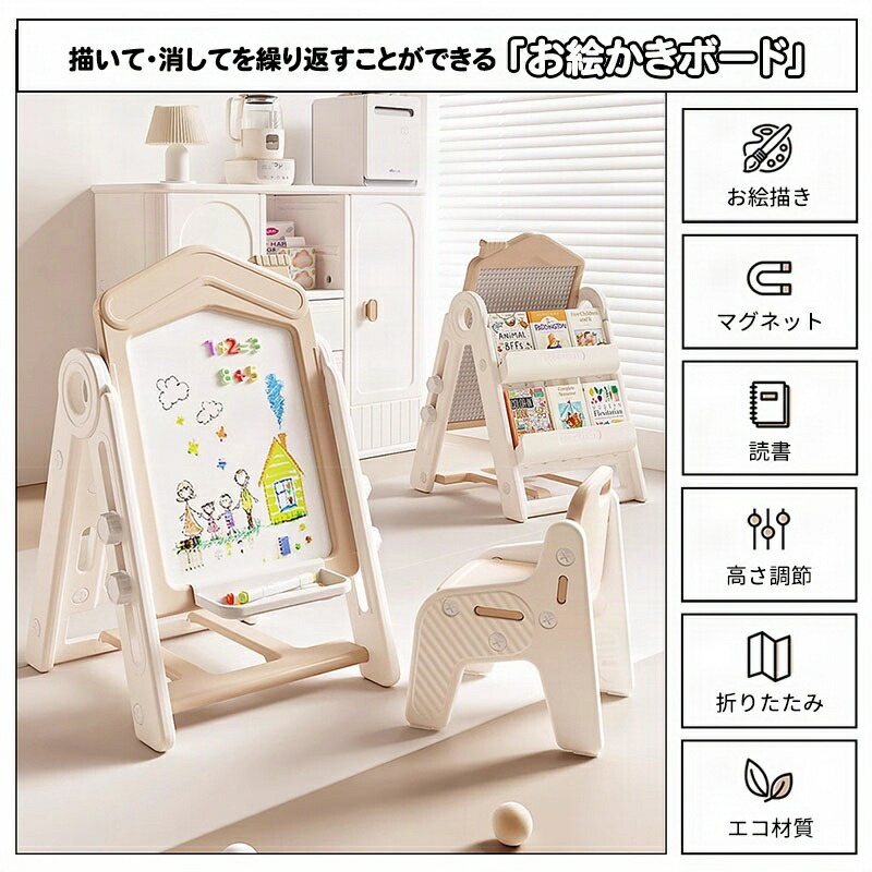 お絵かきボード おえかきボード お絵描 ホワイトボード+本棚 ホワイトボード+ブラック板 ホワイトボード+積み木 椅子なし 椅子あり