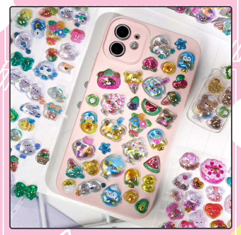 SNSで大人気&新発売3Dシール 立体 日用品雑貨 文房具 手芸 続々入荷中 グーリン猫 ブラウン食物 イエロー鶏 パープル恐竜 ピンクウサギ ブルー犬 6点セット