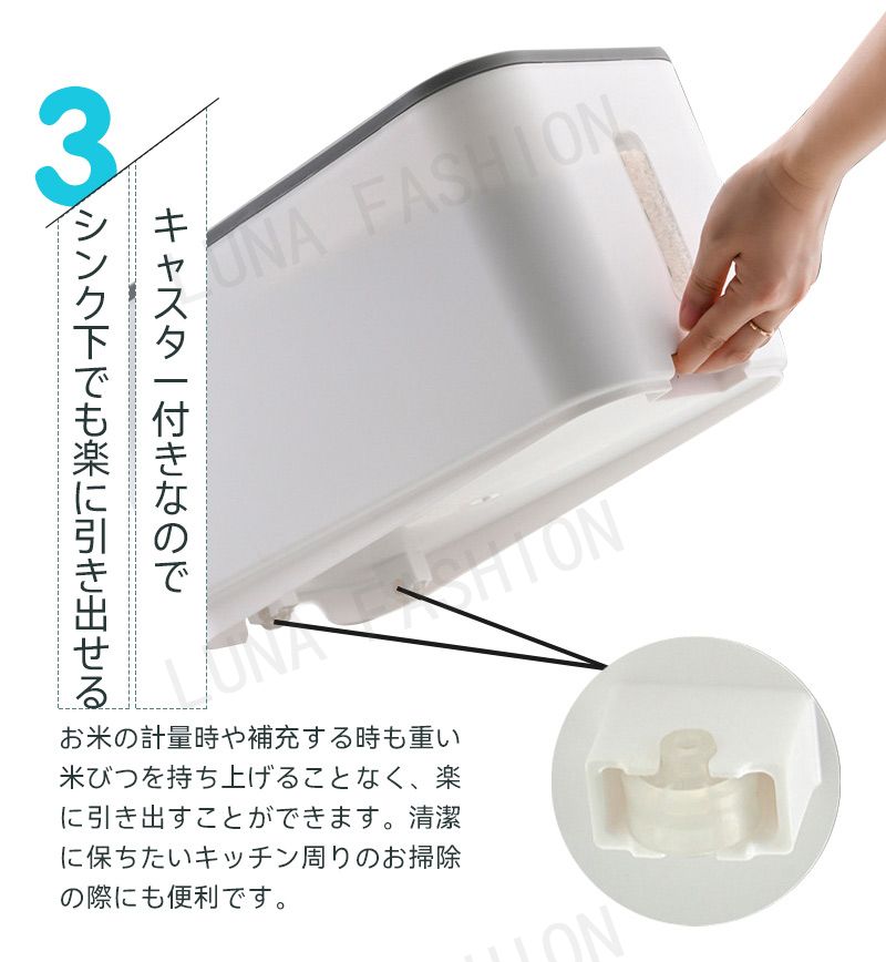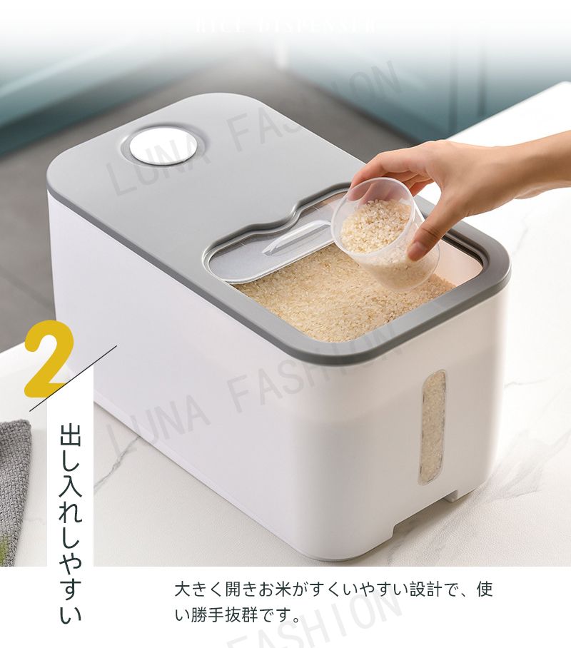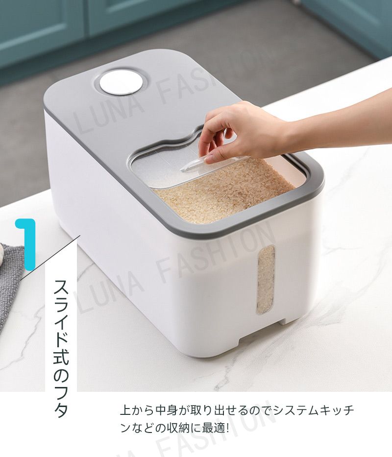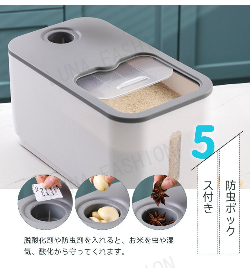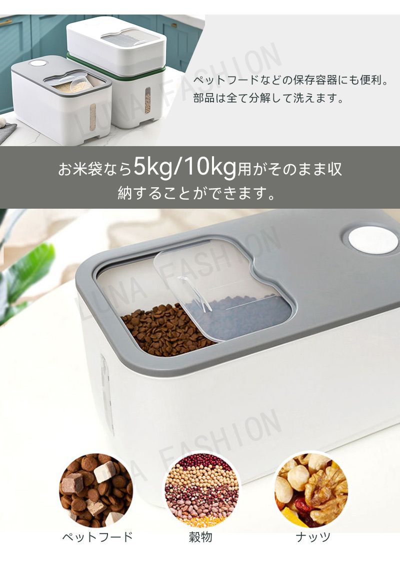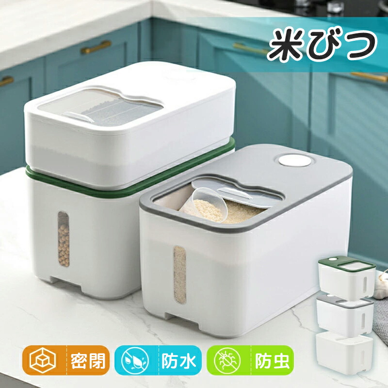 米びつ 10kg おしゃれ 5kg 密 キッチン用品 食器 調理器具 通販 5KG 10KG ホワイト グレー グリーン