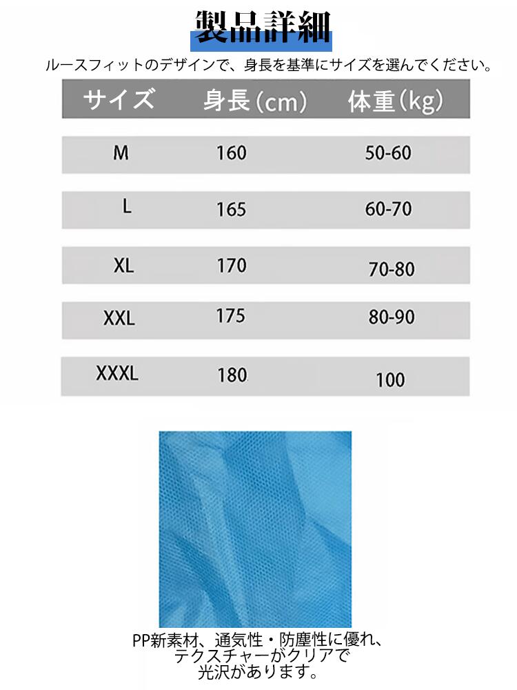 50枚入り 防護服 保護服 使い捨て ホワイト ブルー ネイビー ホワイト【足を包む】 ブルー【足を包む】 ネイビー【足を包む】 M L XL XXL 3XL