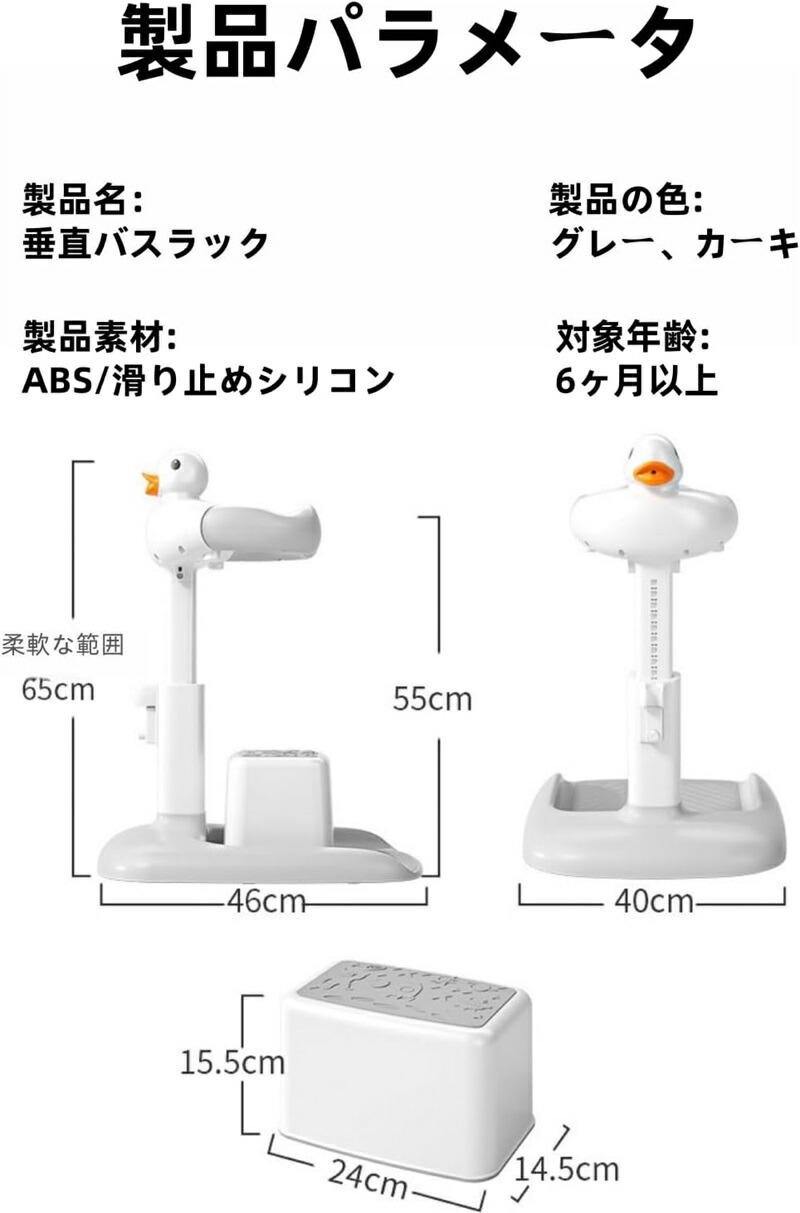 幼児用シャワースタンド ベビー バス グレー カーキ スツールなし スツール付き