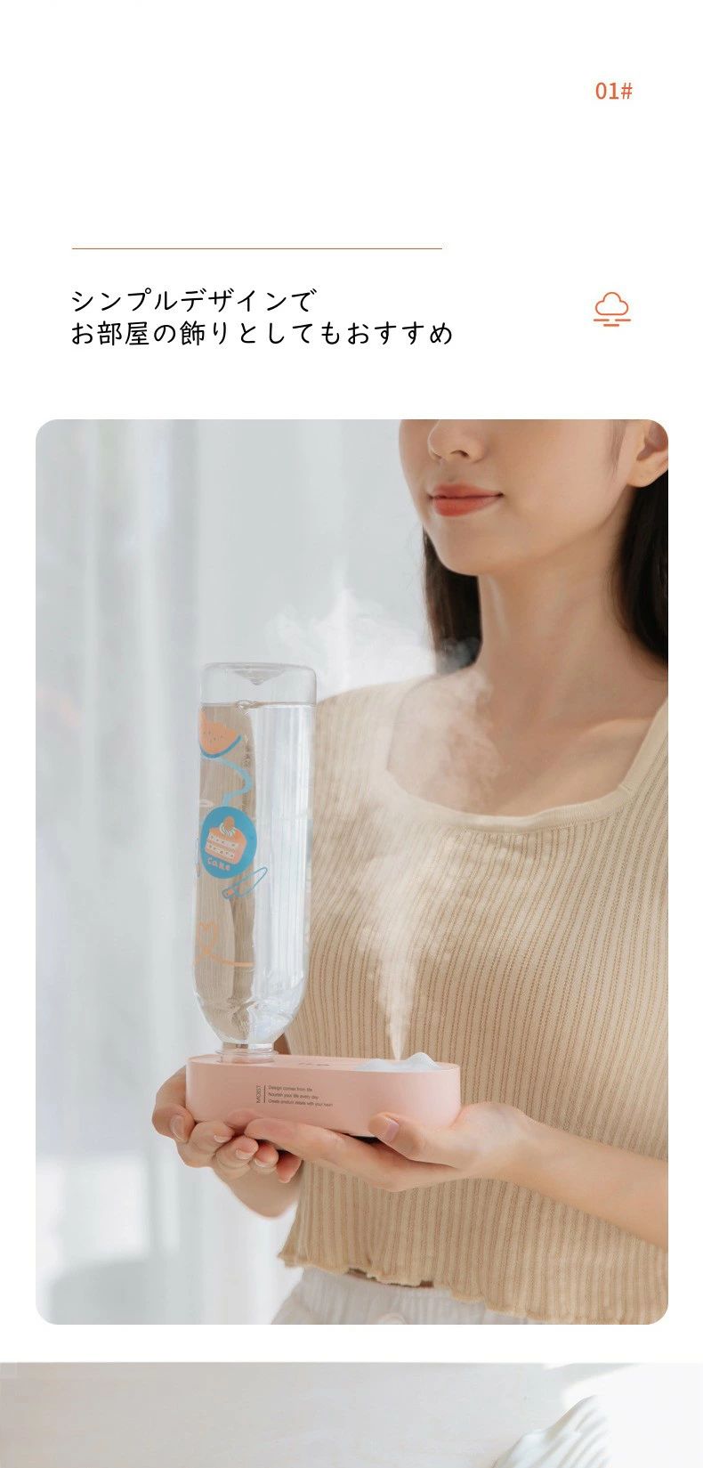 加湿器 卓上 ペットボトル 省エネ 簡単お手入れ コンパクト かわいい スチーム ペットボトル用 ポータブル加湿器 持ち運び ライト付き 携帯用 寝室用 超音波 車載 家庭 オフィス 28mm対 寝室