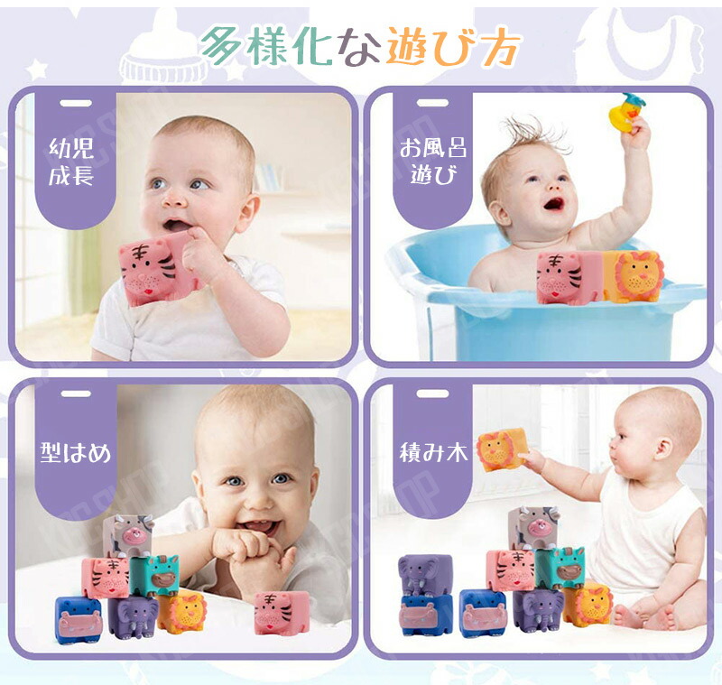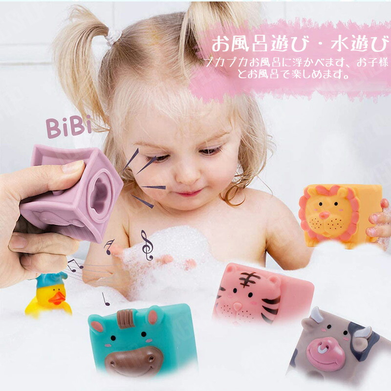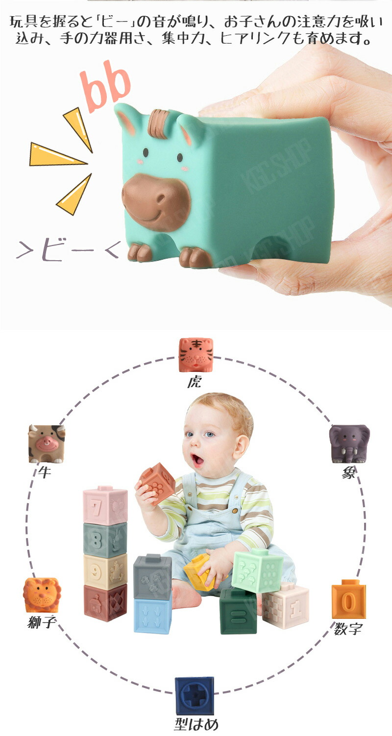 12ピース 音の出るおもちゃ ブロック 知育玩具 ベビー 赤ちゃん 積み木 つみき 柔らか積み木 6か月 0歳 1歳 2歳 室内 遊び おもちゃ 音が鳴る お風呂遊び 数字 動物 虎 男の子 女の 牛