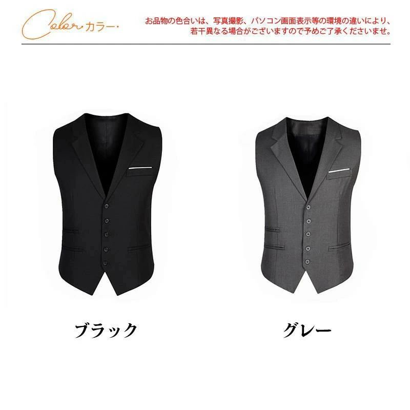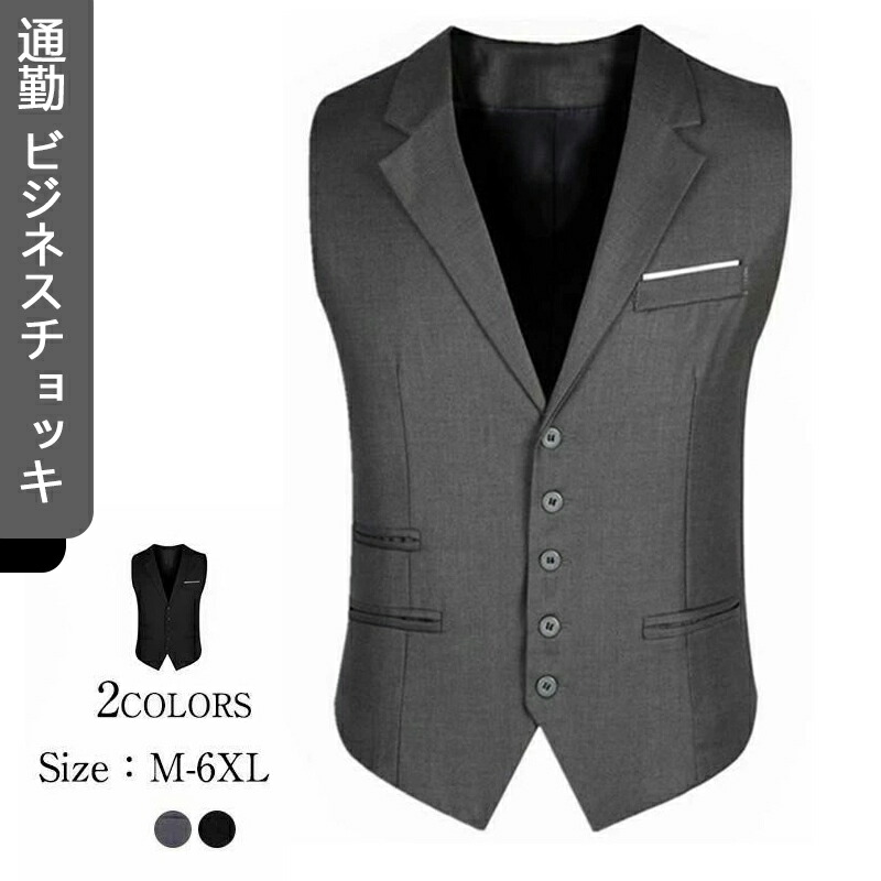 通勤 ビジネス チョッキ 襟付き 着痩 ブラック グレー M L XL 2XL 3XL 4XL 5XL 6XL