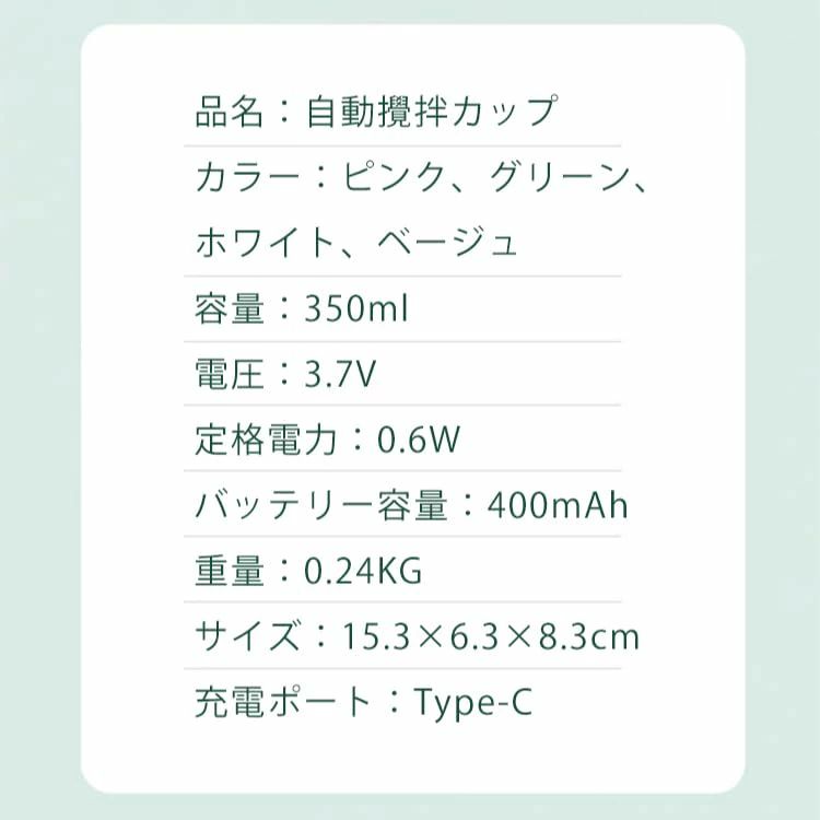 自動ミキサーカップ 自動撹拌 ステンレ キッチン用品 食器 調理器具 続々入荷中 ベージュ グリーン ホワイト ピンク