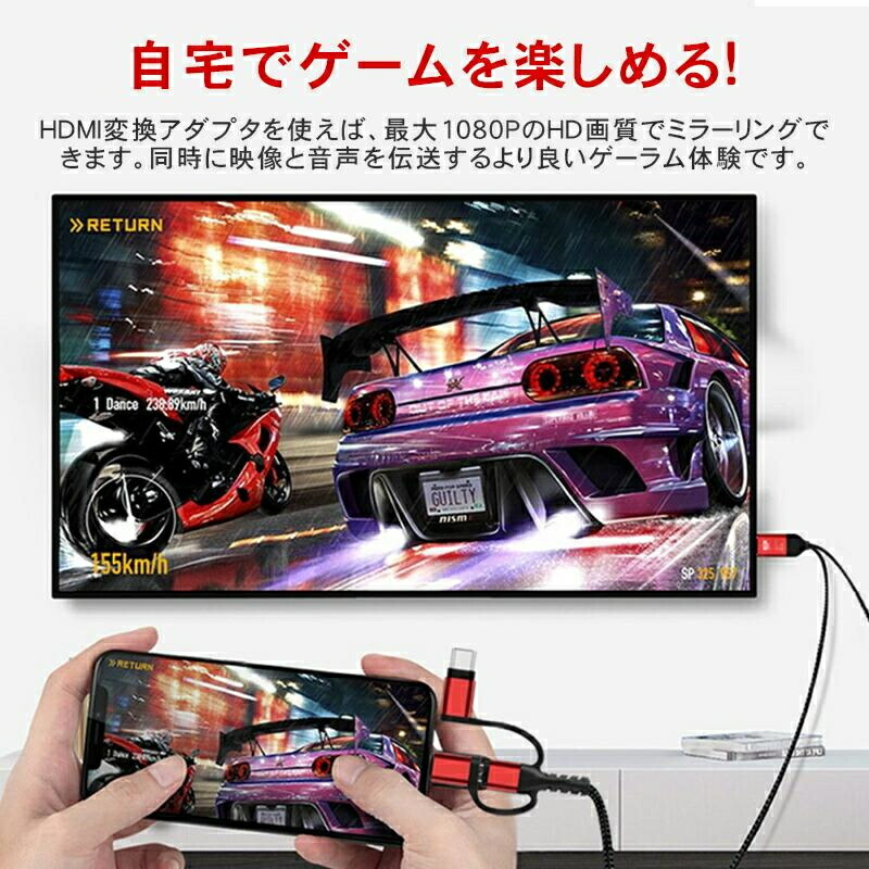 iphoneミラーリング iPhone スマートフォン タブレット用ケーブル 変換アダプター 早い者勝ち ブラック レッド