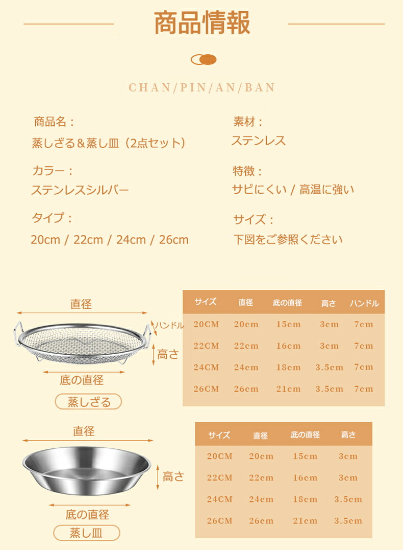 蒸しざる 蒸し皿 2点セット ステンレ 調理 製菓道具 調理器具 蒸し器 人気 20cm 22cm 24cm 26cm