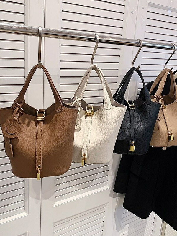 バッグインバッグ 付本革キューブバッグ バッグ レディースバッグ ハンドバッグ 通販 ブラック ブラウン ライトブラウン ホワイト