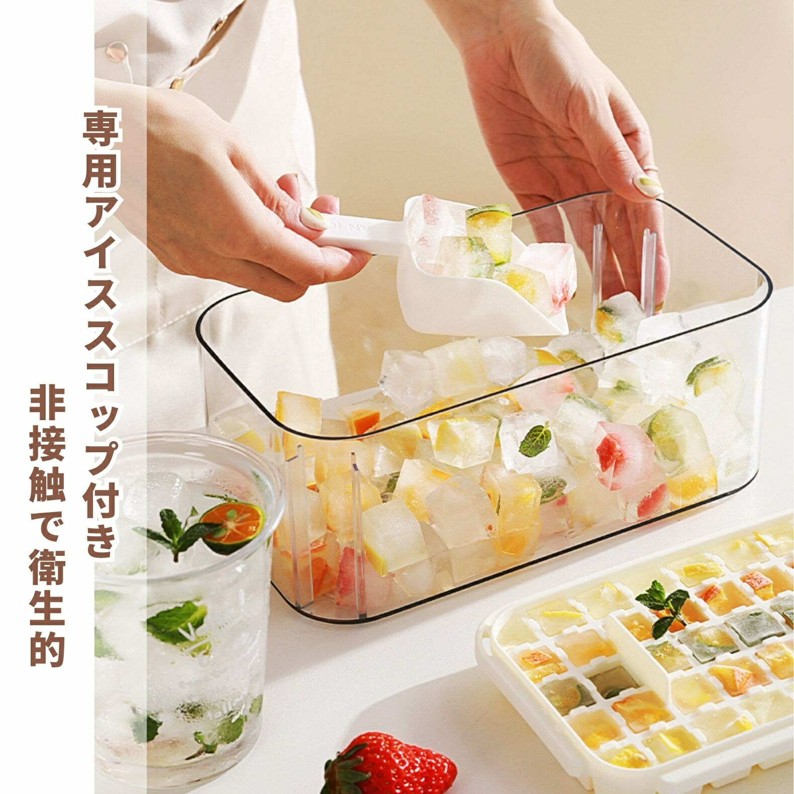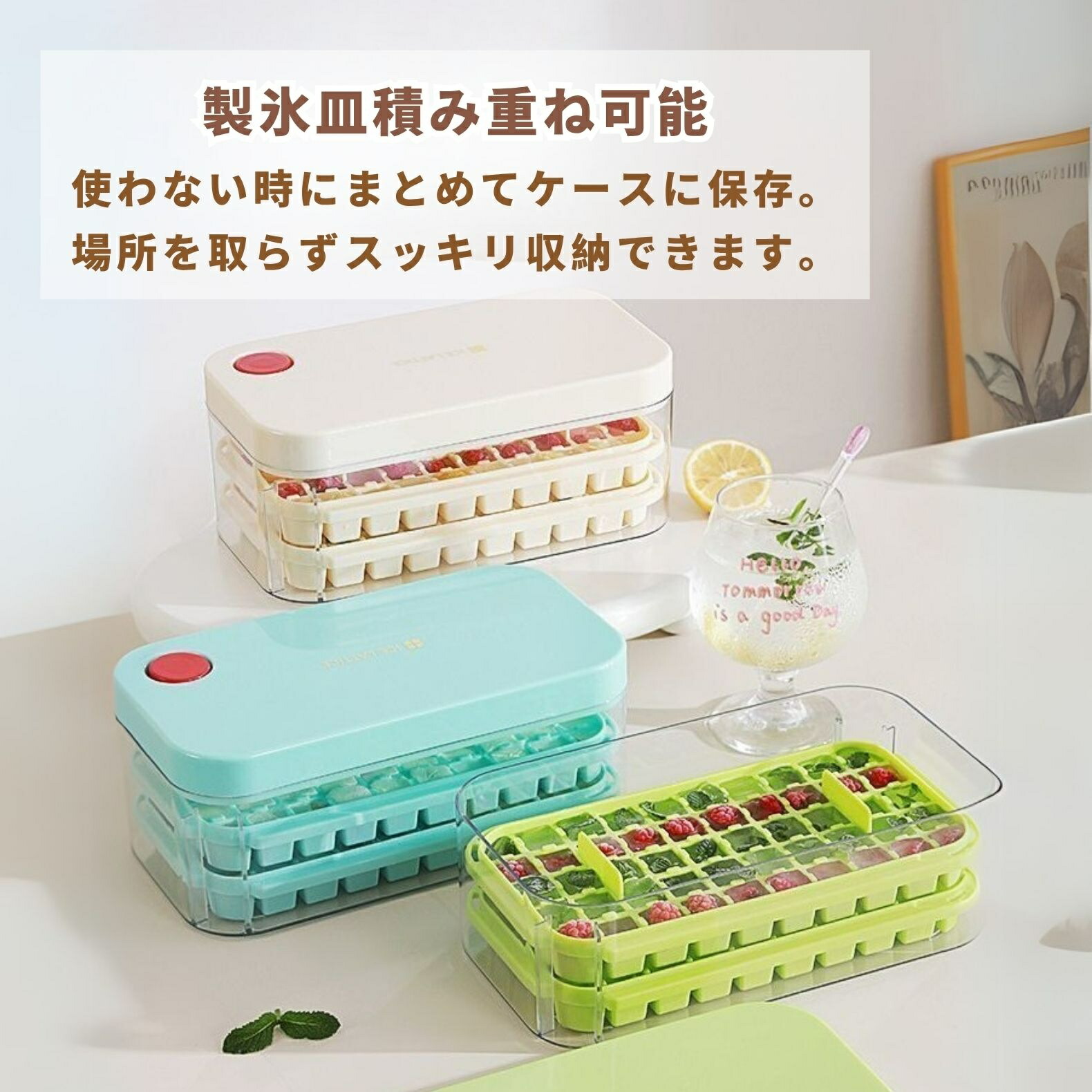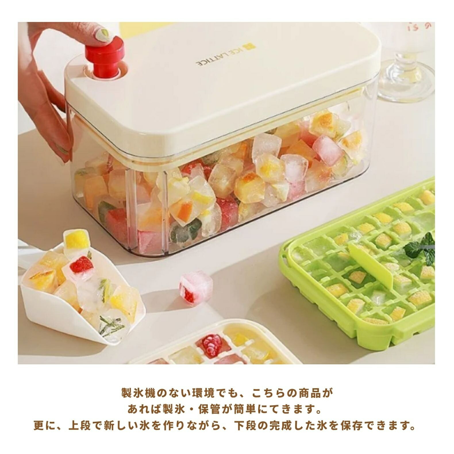 製氷皿 製氷器 製氷機 氷作る容器 4 保存容器 調味料入れ 製氷皿 豊富な品揃え ベージュ グリーン ブルー