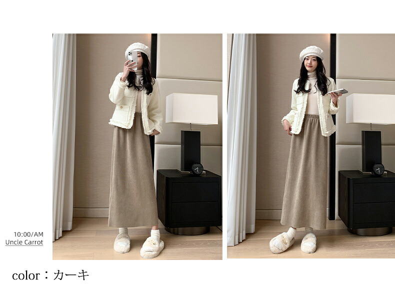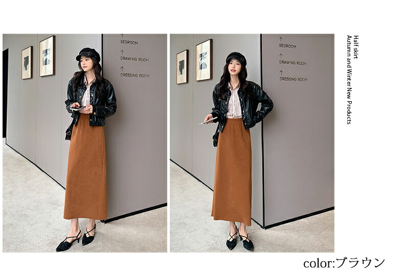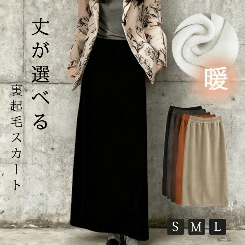 スカート 裏起毛スカート 5色 ウエス ボトムス スカート 特集 レギュラー 短め丈 カーキ ブラウン ダークブラウン グレー ブラック