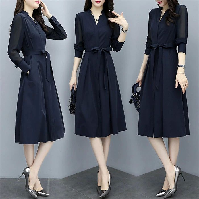 着痩 きれいめ フレアワンピース Vネ ワンピース 超目玉商品 S M L XL 2XL