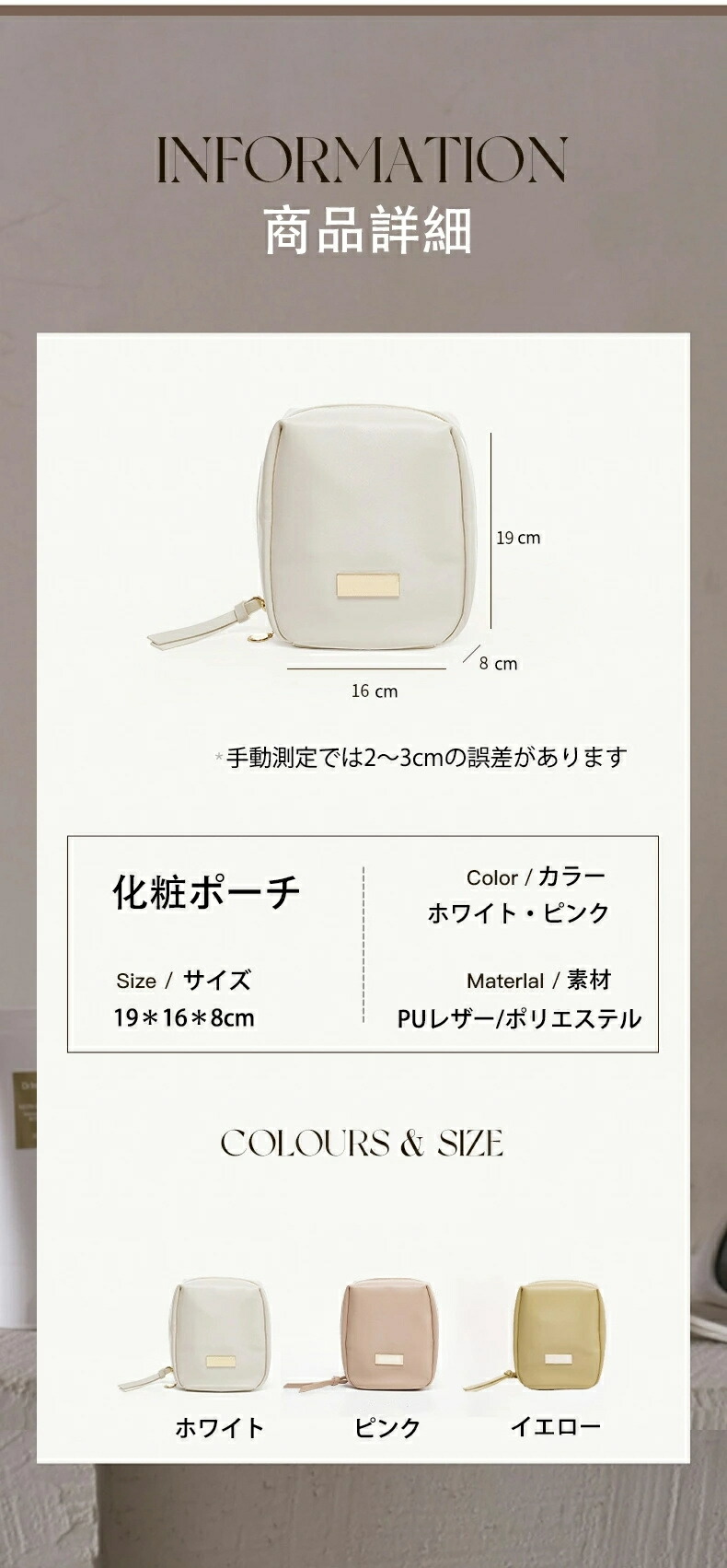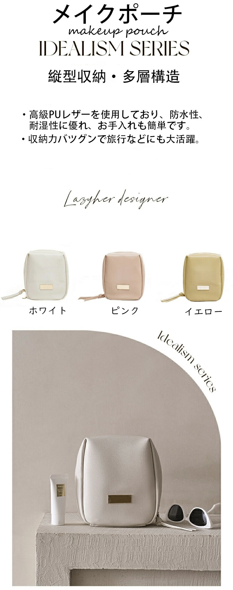 化粧ポーチ メイクポーチ 大きめ 縦型 バッグ レディースバッグ 化粧ポーチ 新登場! ホワイト ピンク イエロー ブラック