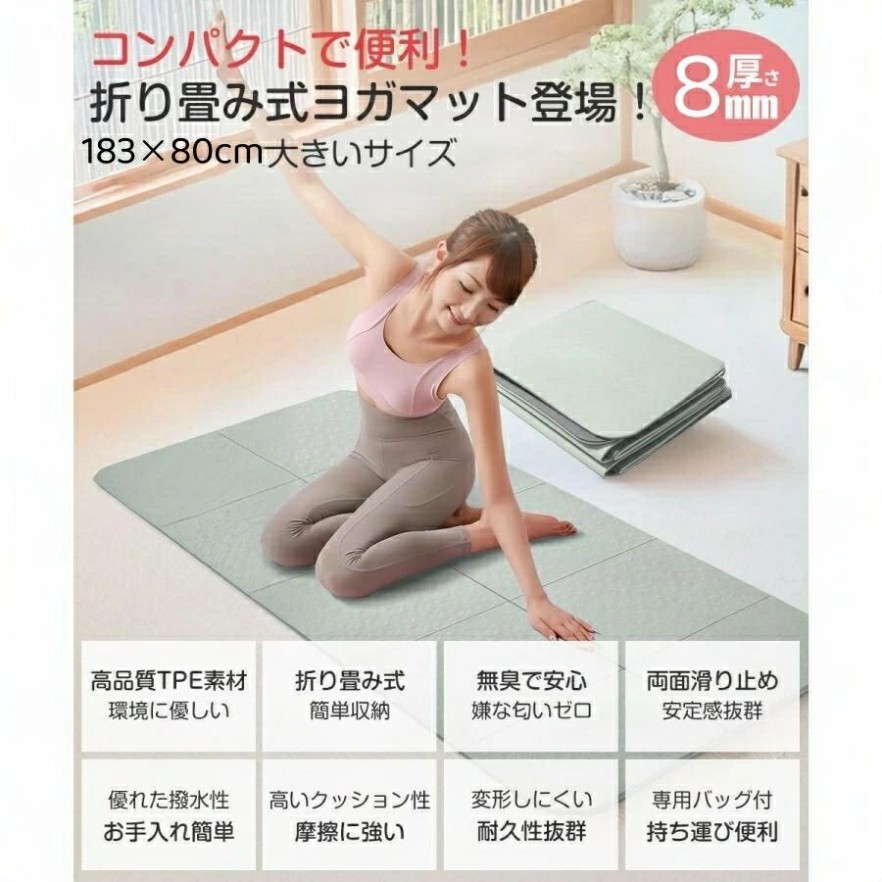 ヨガマット 折りたたみ 8mm TPE スポーツ アウトドア 超目玉商品 ピンク パープル ブルー グレー
