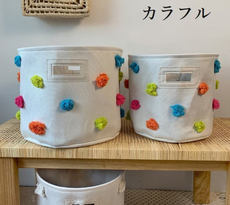 収納バスケット 収納ボックス 布製かご カラフル×大号 カラフル×小号 ホワイト×大号 ホワイト×小号 グレー×大号 グレー×小号
