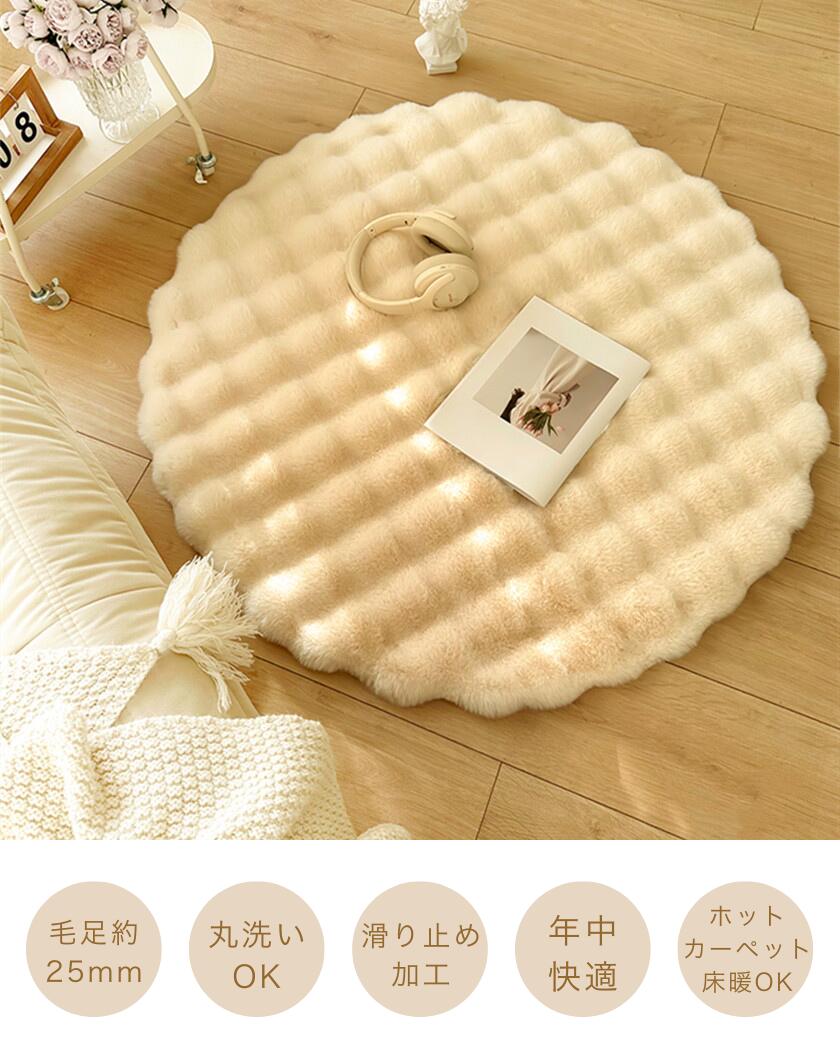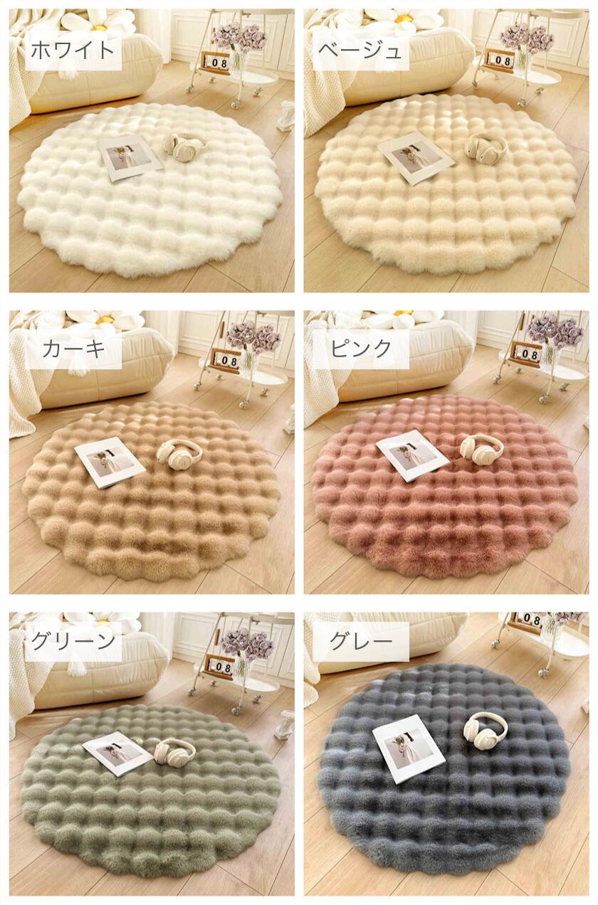 ラグ おしゃれ 円形 ラグマット ラビ ホワイト ベージュ カーキ ピンク グリーン グレー 直径90cm 直径100cm 直径110cm 直径120cm 直径130cm 直径140cm 直径150cm 直径160cm