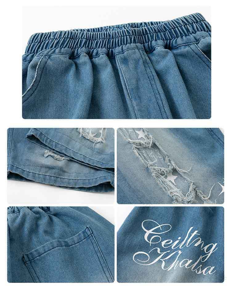 デニムパンツ ビジュー付き