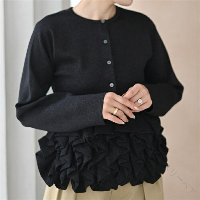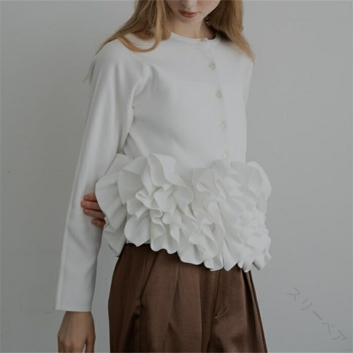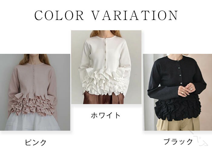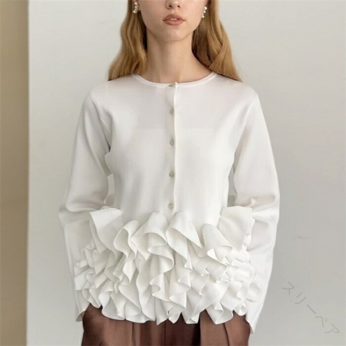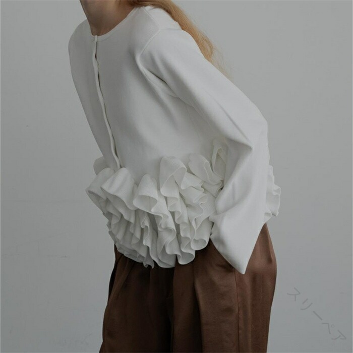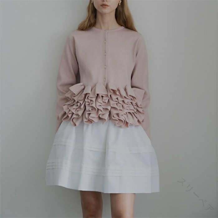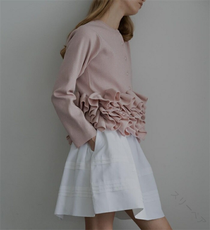 カーディガン フリル裾 レディース 秋 トップス カーディガン ボレロ 新作 ピンク ホワイト ブラック
