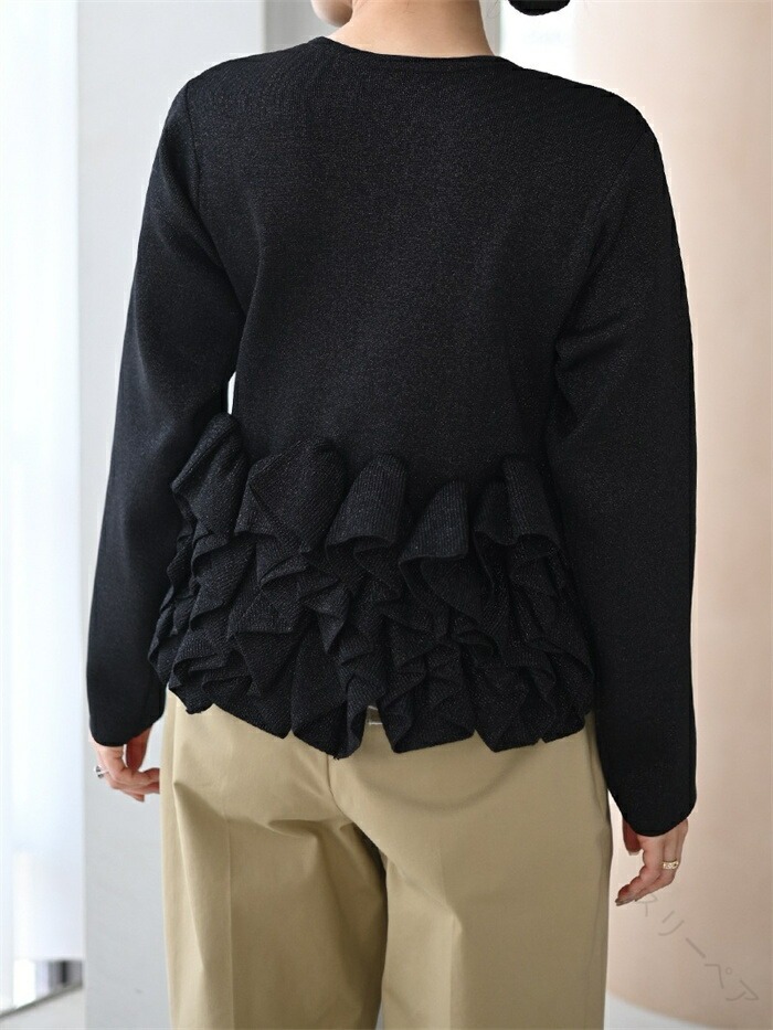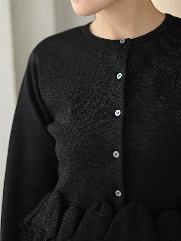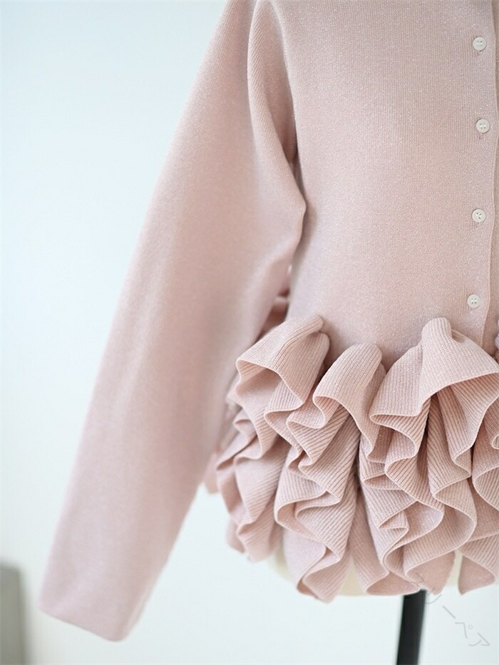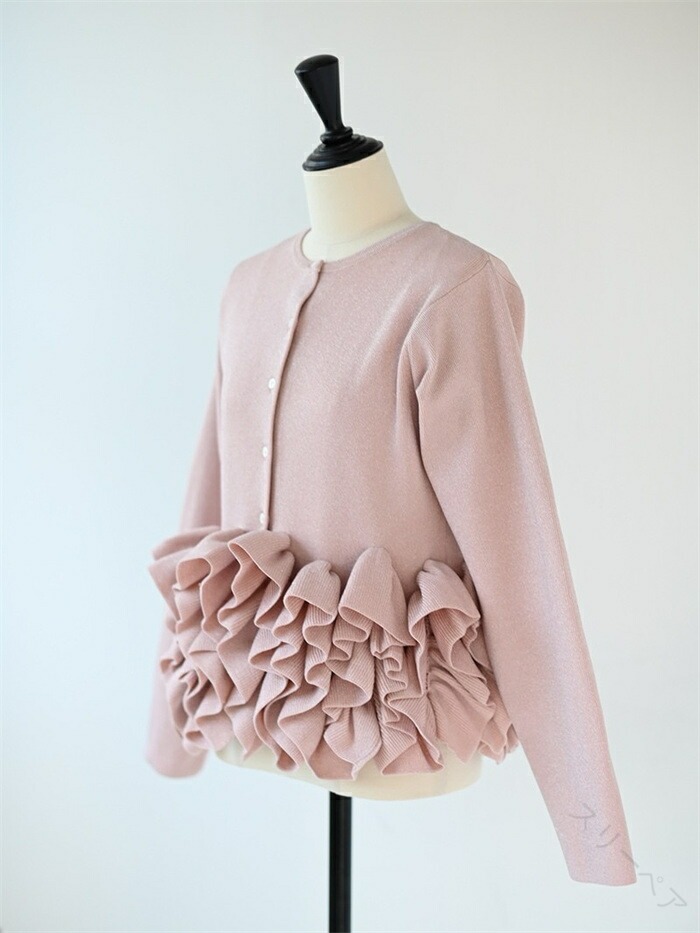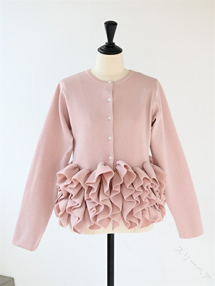 カーディガン フリル裾 レディース 秋 トップス カーディガン ボレロ 新作 ピンク ホワイト ブラック