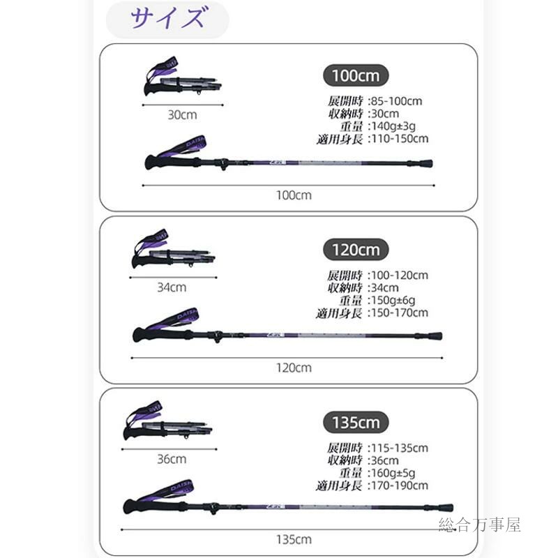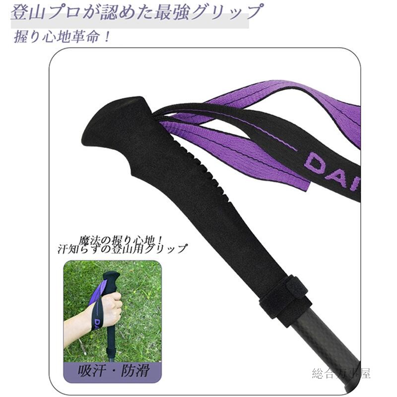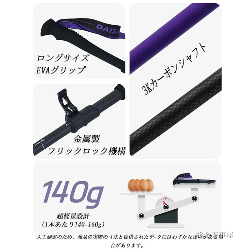 トレッキングポール 3Kカーボン 超軽 スポーツ アウトドア 人気 パープル グリーン ブラック イエロー 85-100cm(約140g) 100-120cm(約150g) 115-135cm(約160g)
