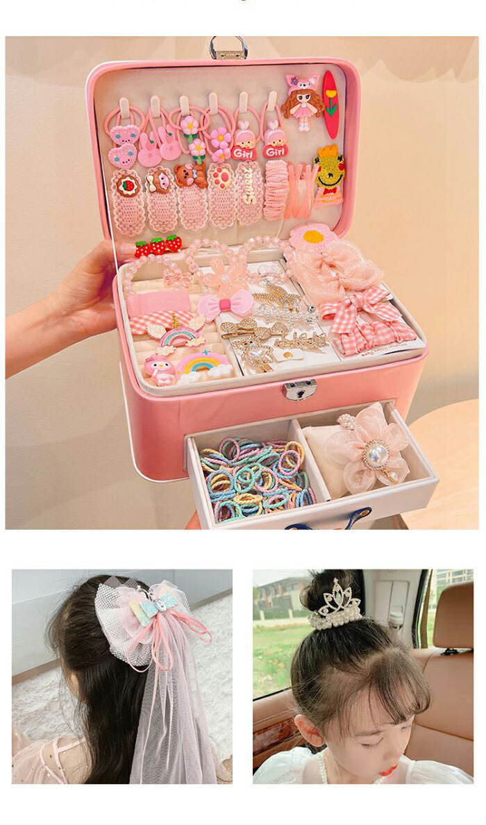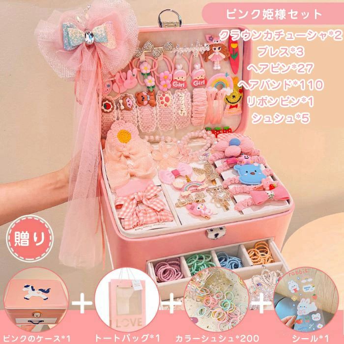 ヘアアクセサリー キッズ アクセサリーbox 子供 100+点セット アクセサリーボックス 女の子 ヘアゴム ヘアクリップ まとめ髪 ヘアピン リボン 花 可愛い 入園式 入学式 卒業式 髪飾り