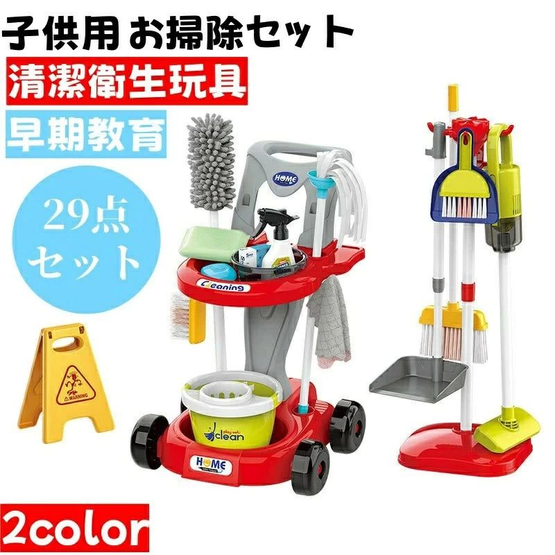 お掃除セット 子供用シミュレーション清掃工具カート おままごと 29点セット 掃除機 掃除機モップセット 幼児用キッズクリーニングセット 清潔衛生玩具 早期教育 女の子 誕生日 クリスマス プ 男の子