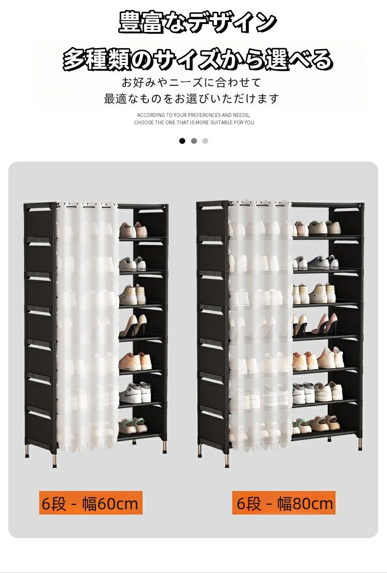 靴箱シューズラック 幅60 80 cm 4段 5段 6段 7段 8段 ホワイト-60cm ホワイト-80cm グレー-60cm グレー-80cm ブラック-60cm ブラック-80cm