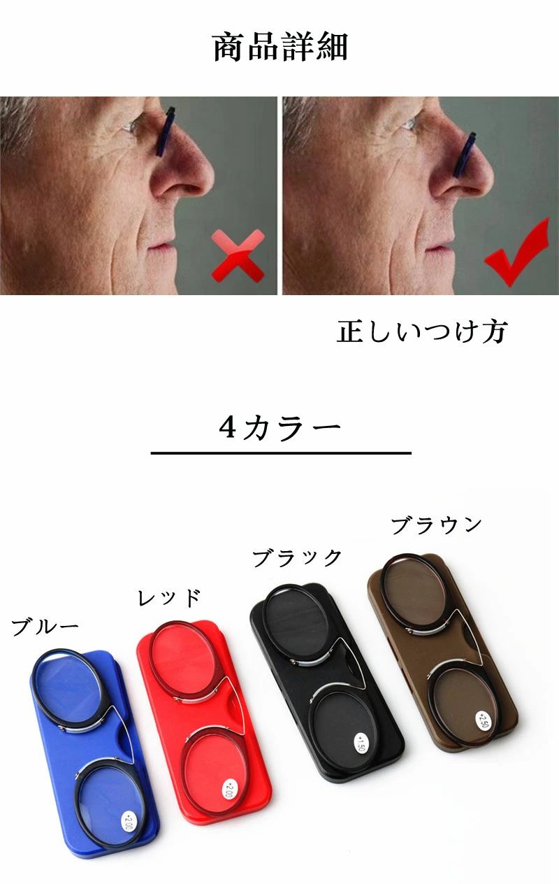 鼻掛け ノーズクリップ 鼻メガネ おし ウィッグ つけ毛 フルウィッグ 新登場! ブラック レッド ブルー ブラウン +1.0 +1.5 +2.0 +2.5 +3.0 +3.5