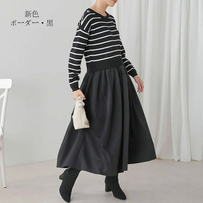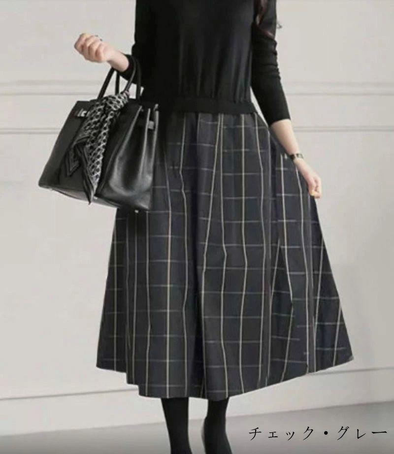 可愛い 50代 40代 大きいサイズ ワンピース 新登場! 無地・黒 チェック・グレー チェック・黒 無地・杏色 杏色 新柄:ボーダー・黒 新柄:ボーダー・ベージュ