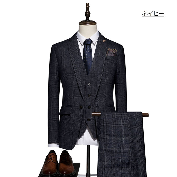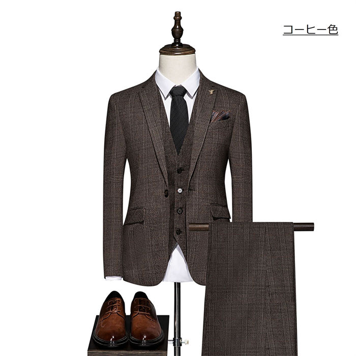 チェック柄 スリーピース メンズ 紳士 メンズファッション 豊富 コーヒー色 ネイビー ダークグレー M L XL 2XL 3XL 4XL 5XL