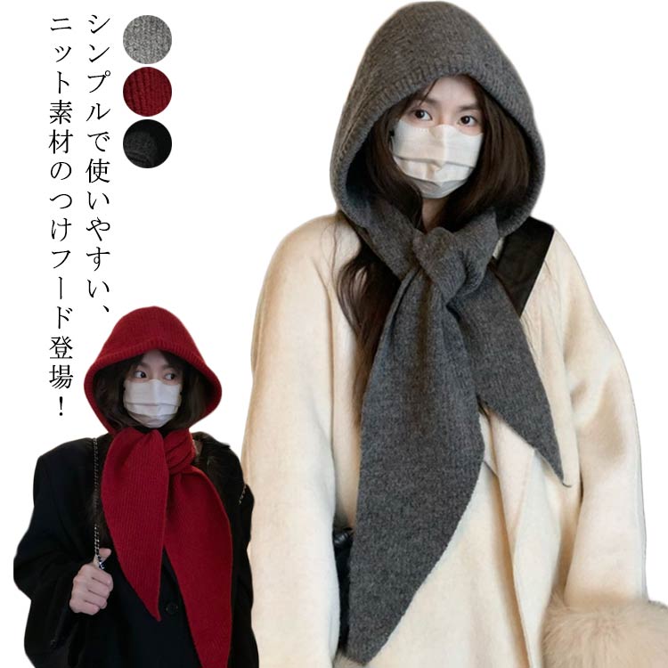 ニット 秋冬 フードウォーマー 付けフ 付け襟 新登場! グレー ワインレッド ブラック