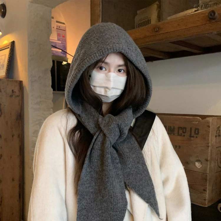 ニット 秋冬 フードウォーマー 付けフード つけ襟 スヌード 暖かい 無地 ネックウォーマー 防風 冬 シンプル レディー 防寒