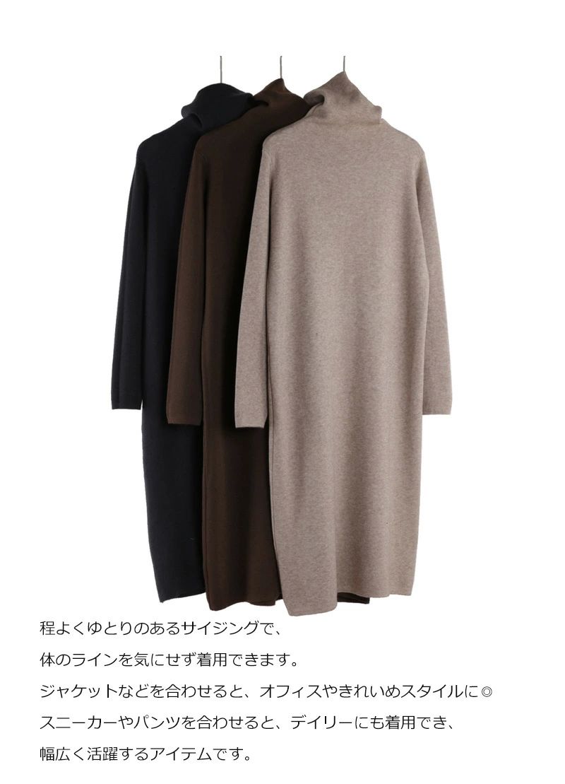 ニットワンピース マキシワンピース レ ワンピース 続々登場 杏色 キャメル コーヒー 炭黒 黒