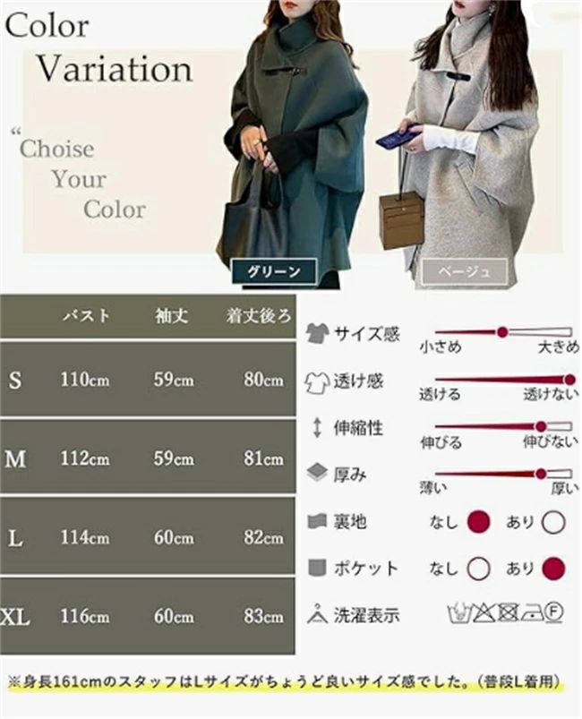ポンチョコート ジャケット レディース レディースファッション 豊富な品揃え ベージュ グリーン ブラック S M L XL